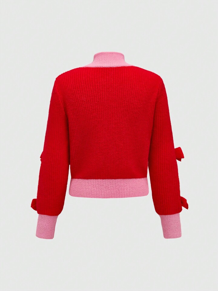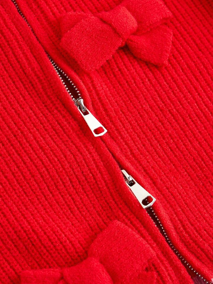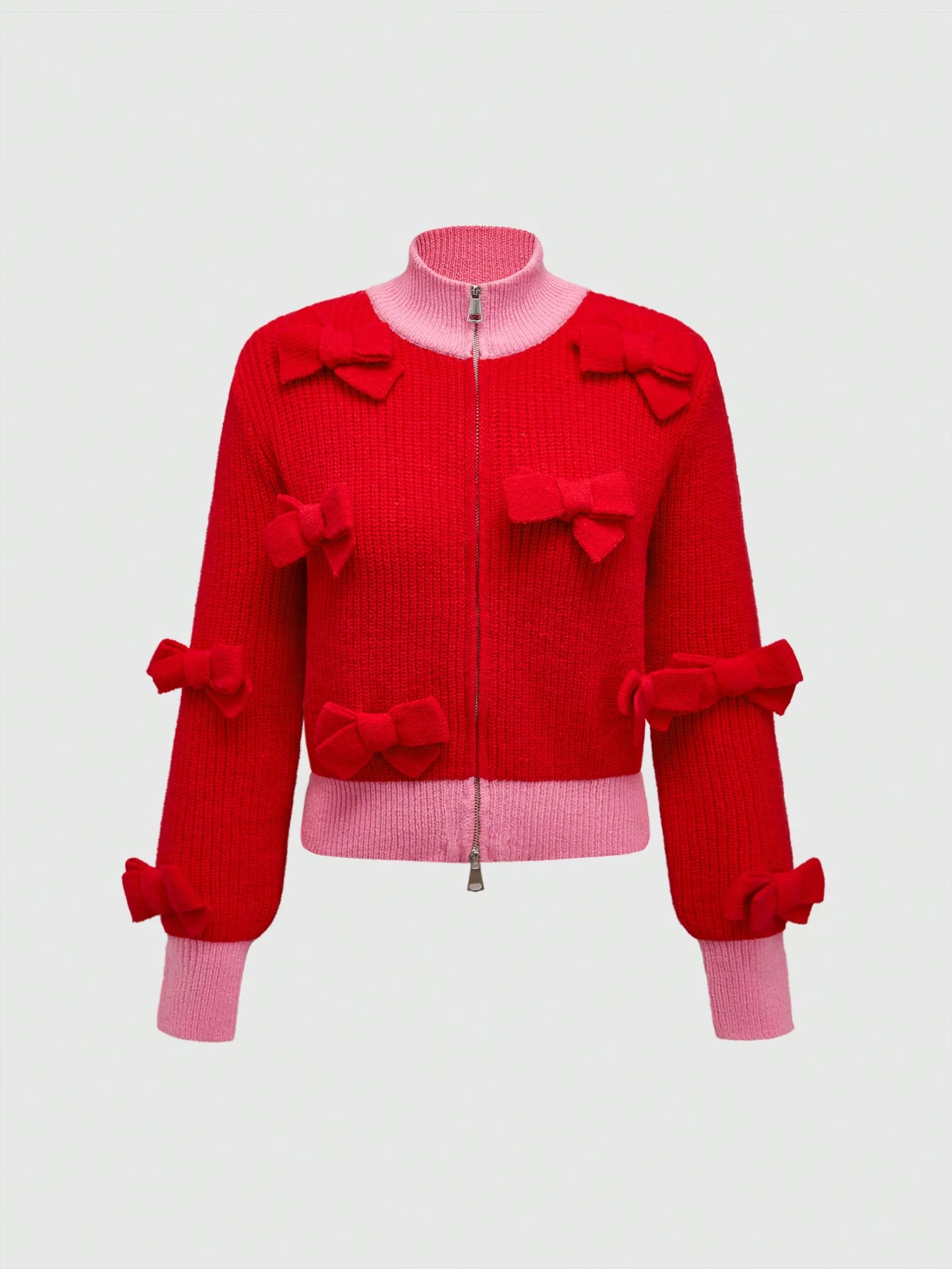 Kawaii 3D Bow Dual-Tone Zipper Cardigan Sweater