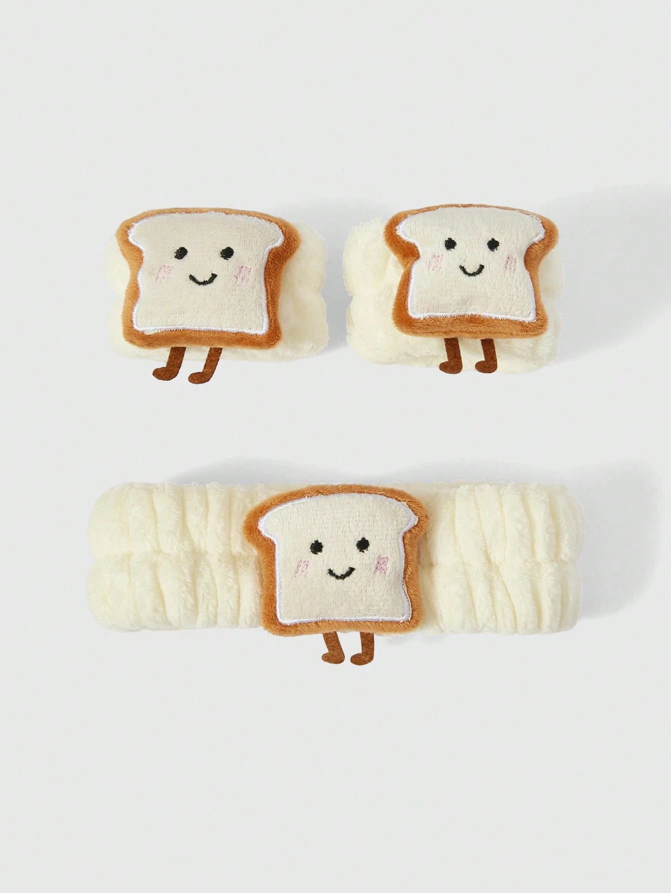 Kawaii 3pcs/Set Cute Cartoon Toast Hair Ties/Bread Headbands For Washing Face, Applying Mask, Keep Hair Dry & Wristband As Accessories, School Stuff, Gifts, Hair Accessories, Head Bands