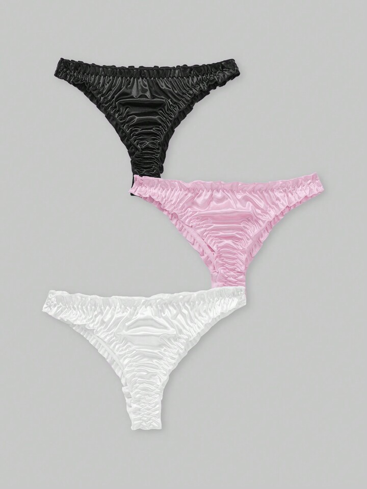 Kawaii 3pcs/Set Y2K Ruched Satin Panties With Star Rhinestone Decor