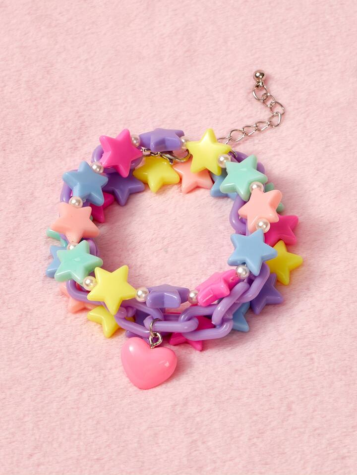 Kawaii 3pcs Star & Faux Pearl Decor Beaded Bracelet