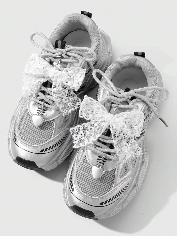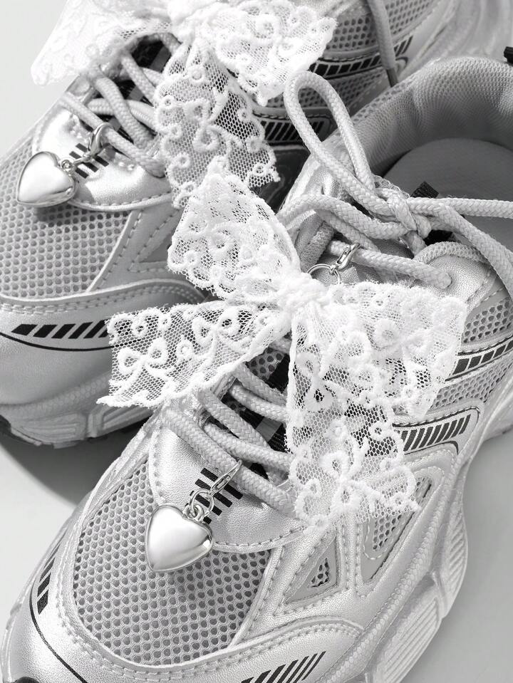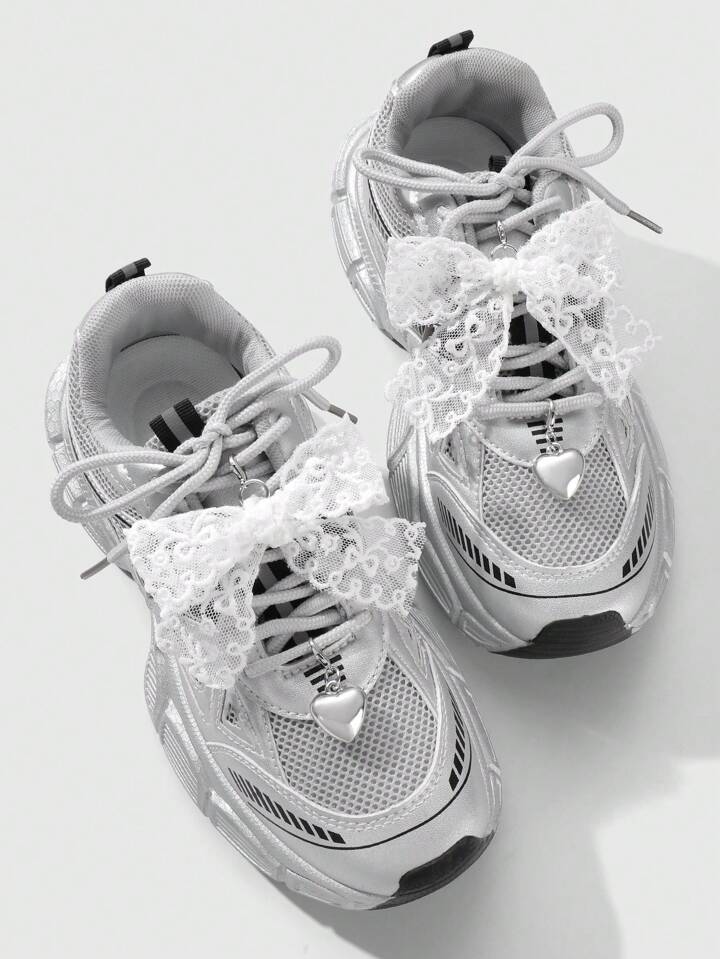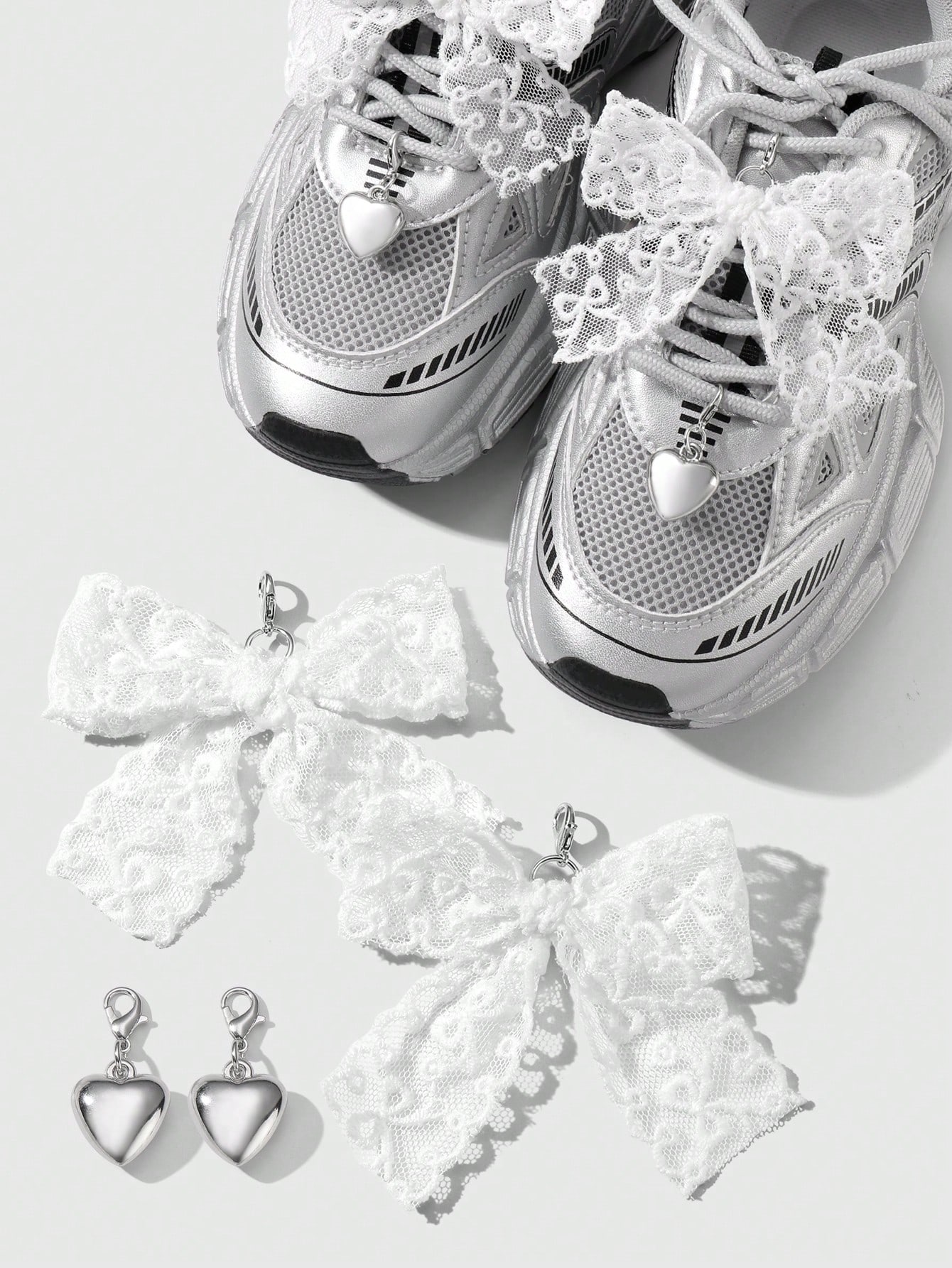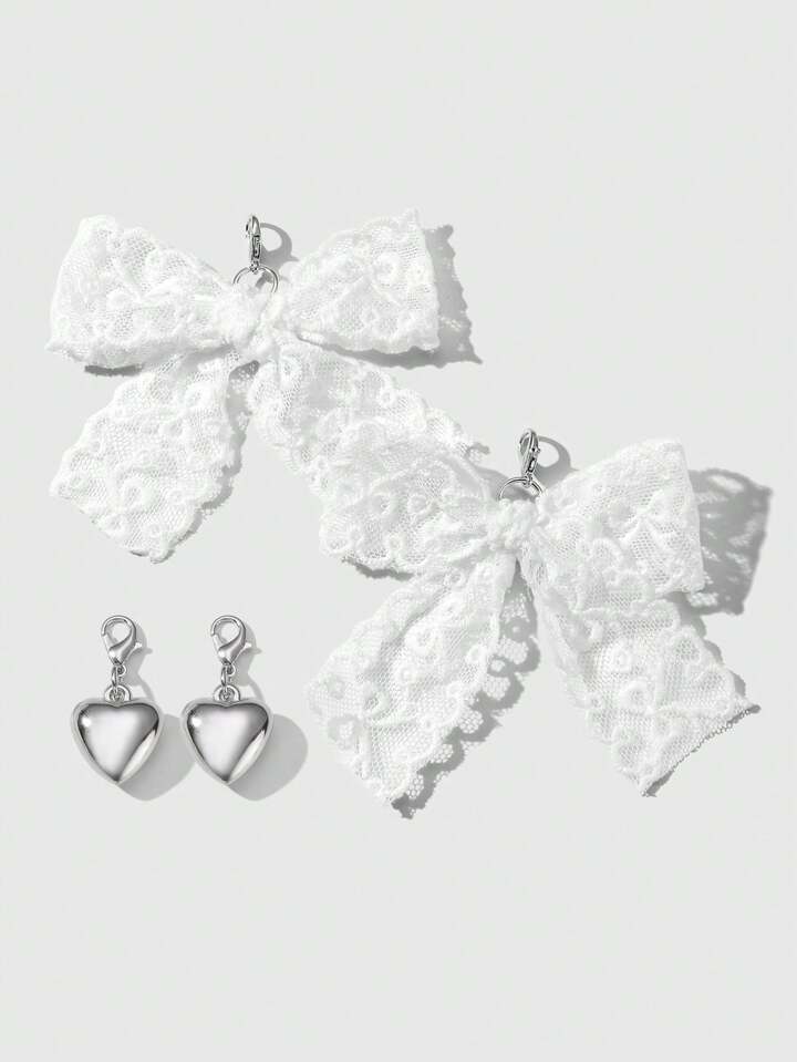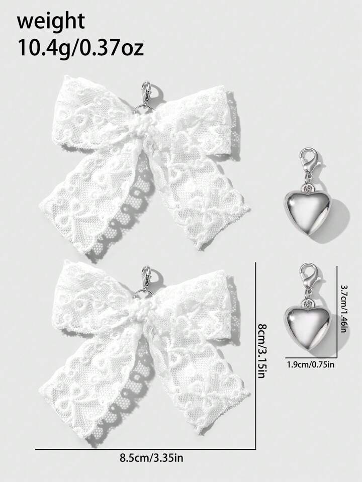 Kawaii 4pcs Elegant Versatile Minimalist Chic Luxury High-Quality White Mesh Lace Embroidery Bow Heart CCB Lobster Clasp Shoe Charms, Combo Set, Suitable For Women, Daily Wear, Holiday Gifts