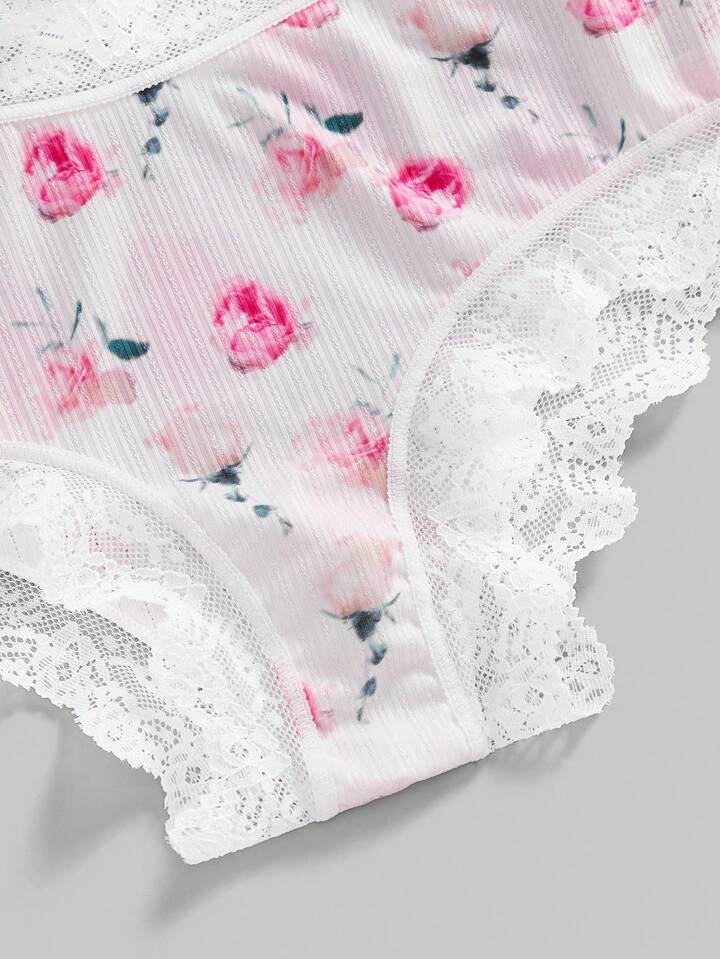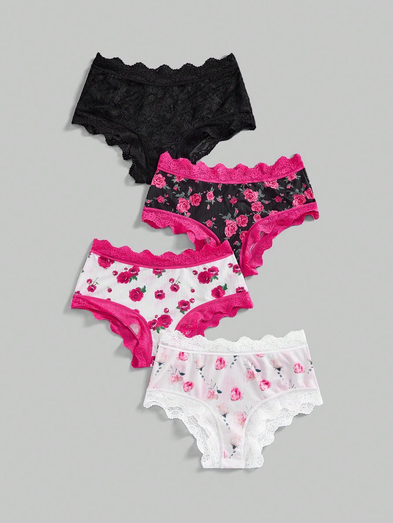 Kawaii 4pcs/Pack Romantic Floral Lace Patchwork Print Panties