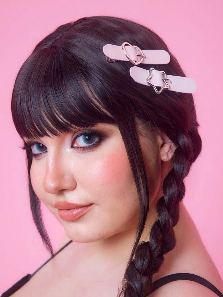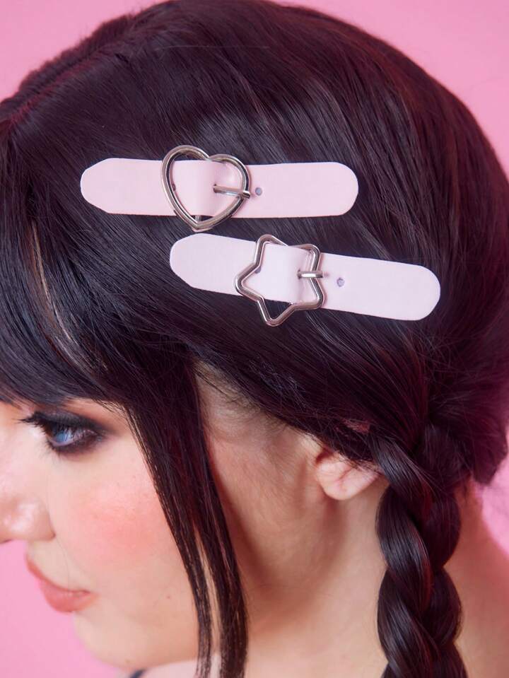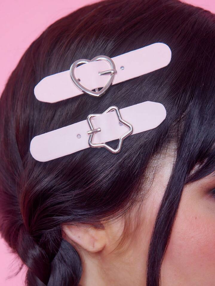 Kawaii 4pcs Random Cute Heart & Star Design PU Leather Hair Clips, High Quality Plain Pink Duck Clip, Stylish Niche Design Fashion Hair Accessories Claw Clips Hair Slide Hair Barrettes
