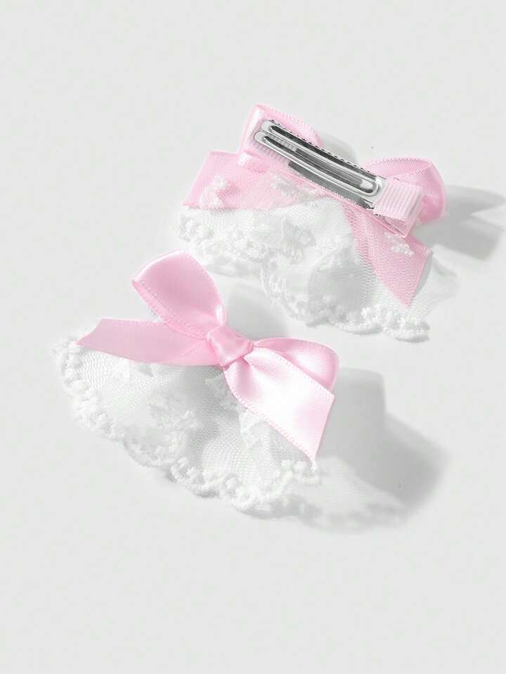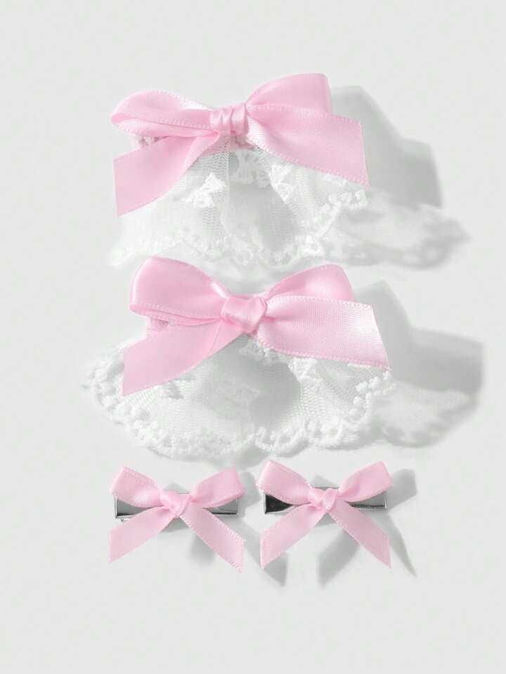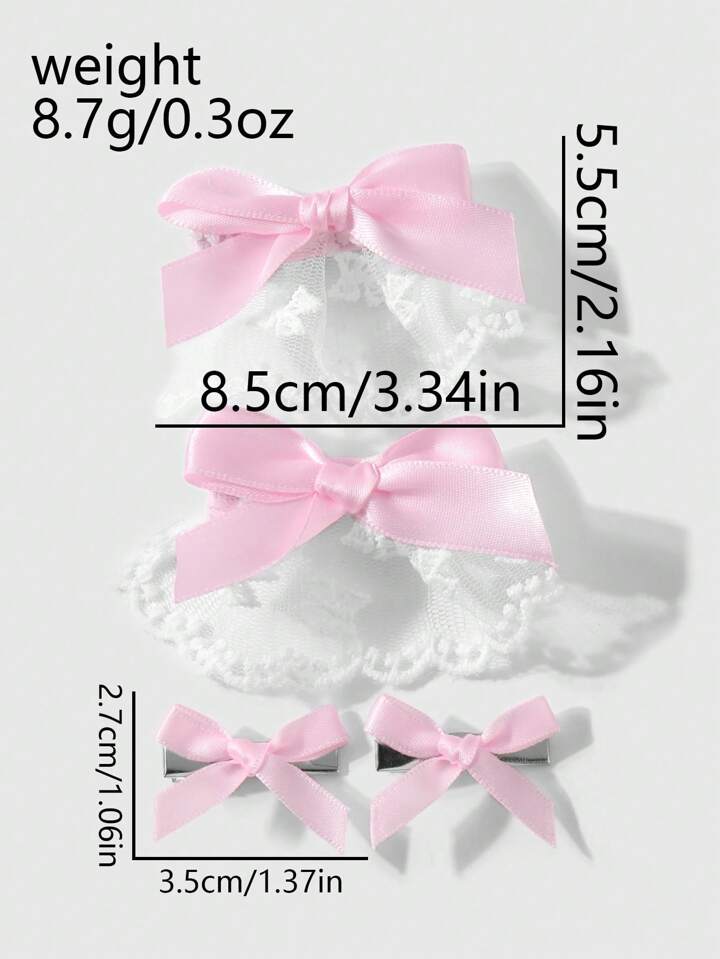 Kawaii 4pcs/Set Cute & Aesthetic Bowknot Lace Embroidery Hair Clips, Versatile White Mesh Barrettes Suitable For Girls, Women, Daily Wear, Holiday Gifts