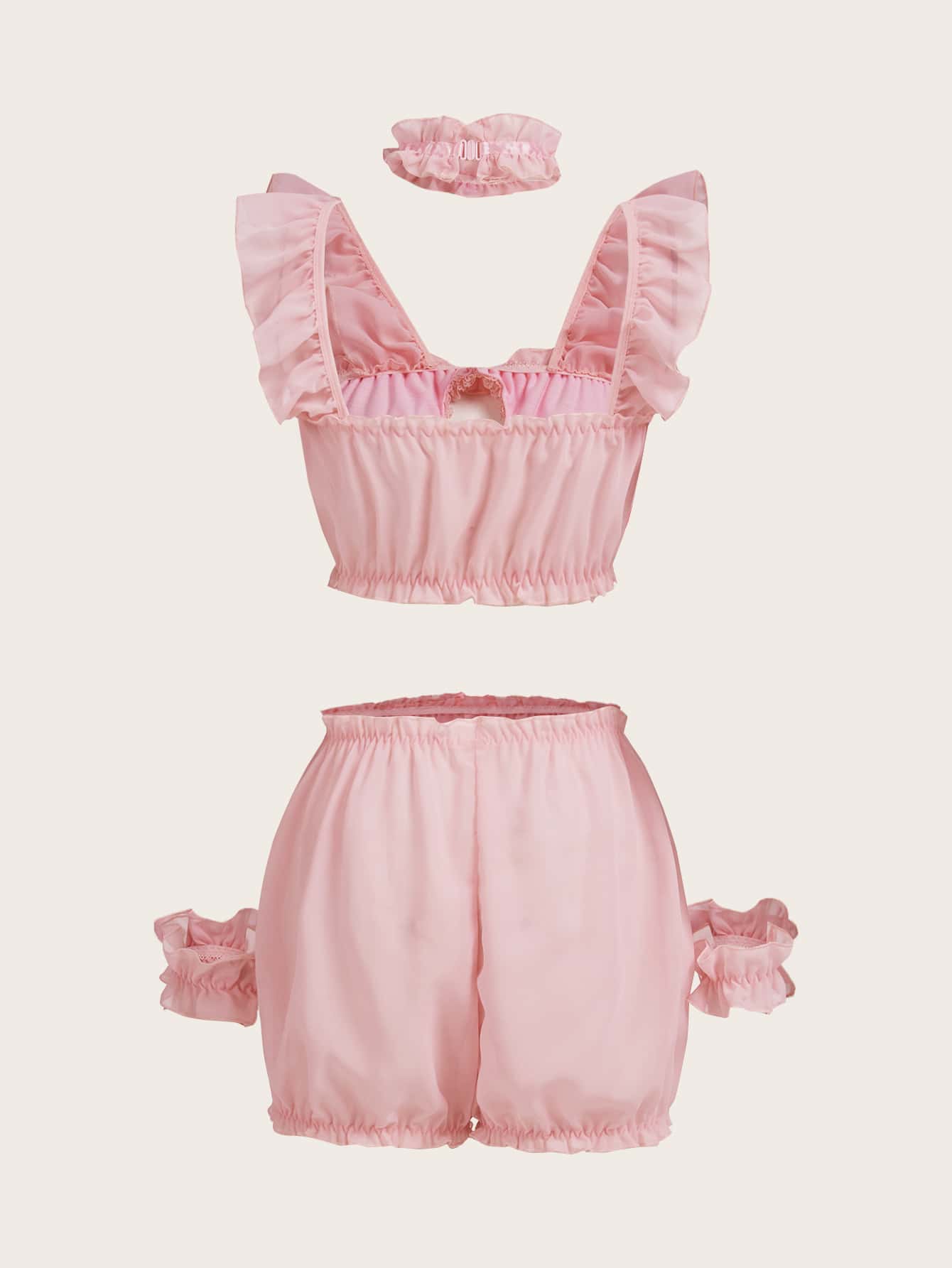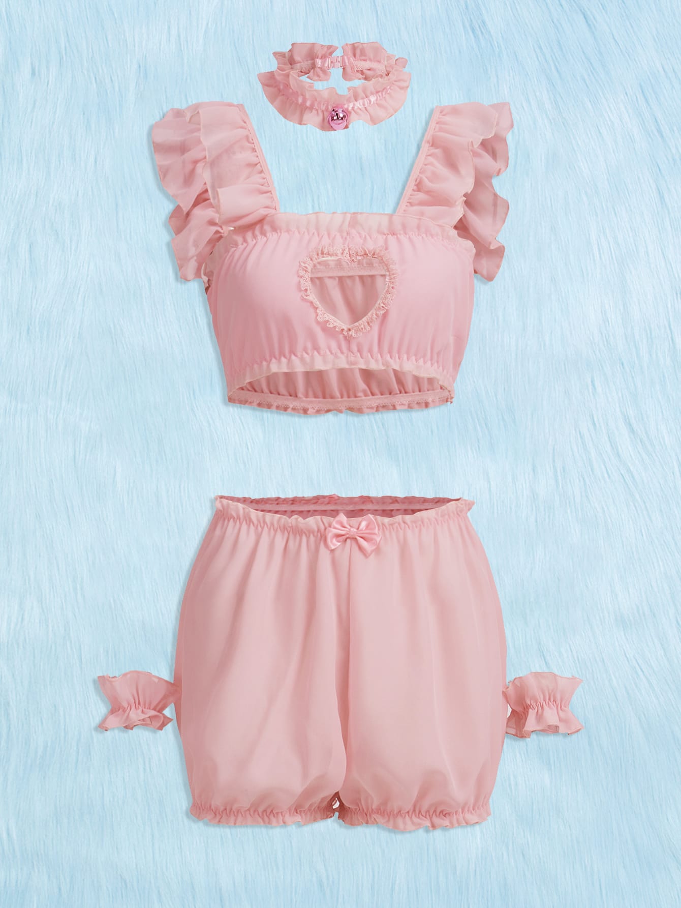 Kawaii 5pack Ruffle Trim Lingerie Set With Choker