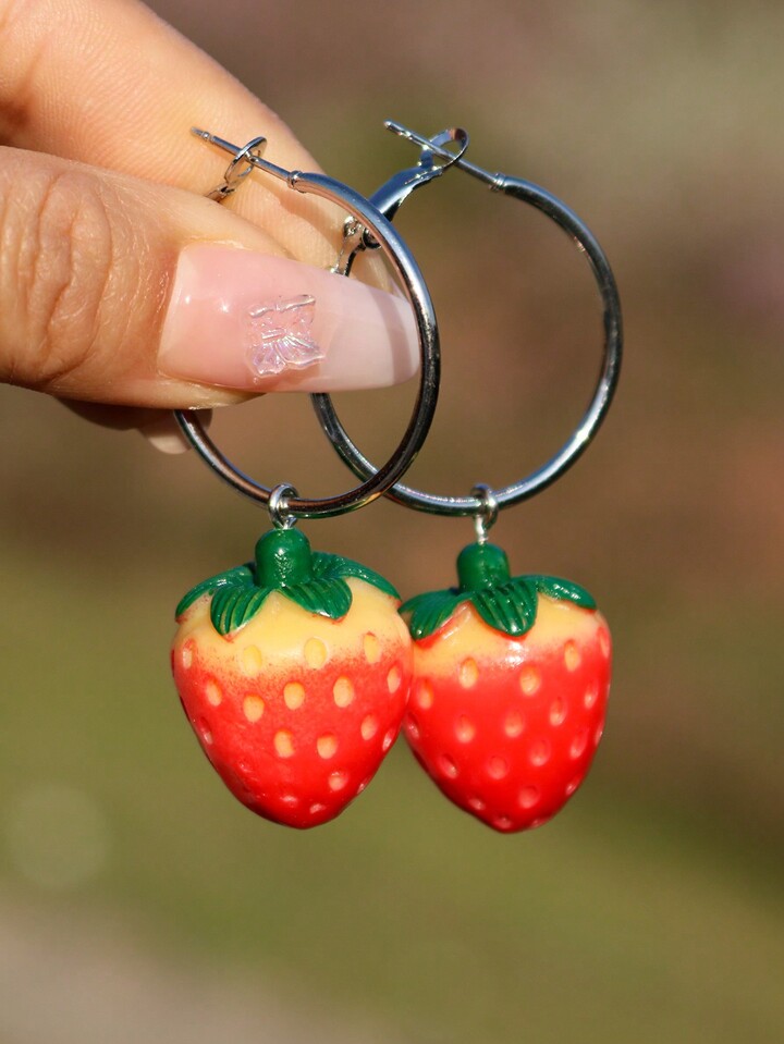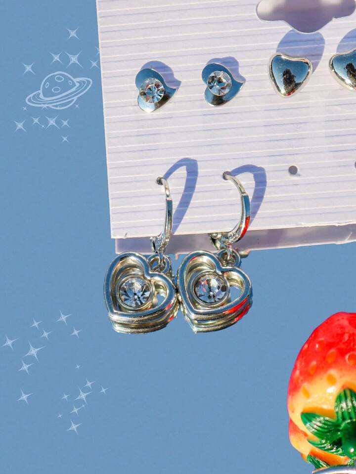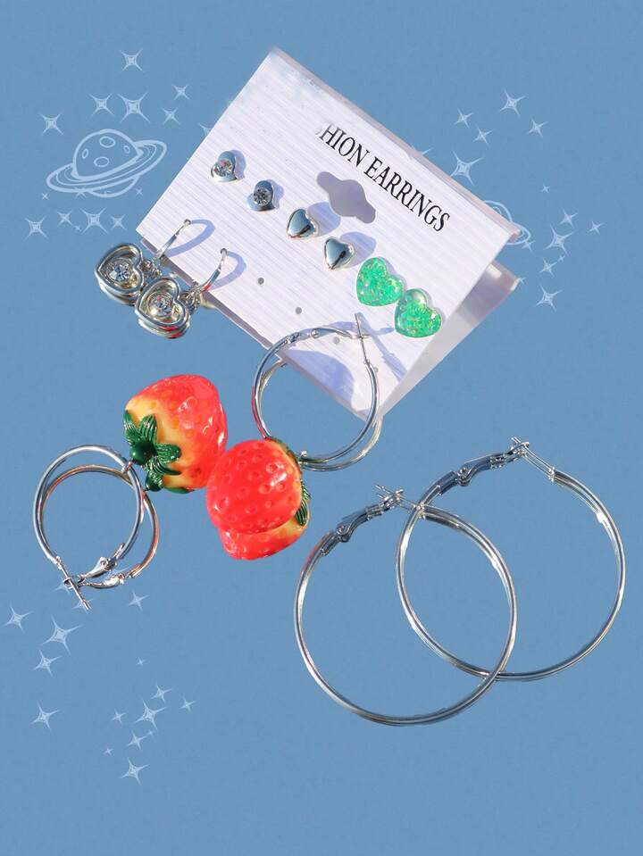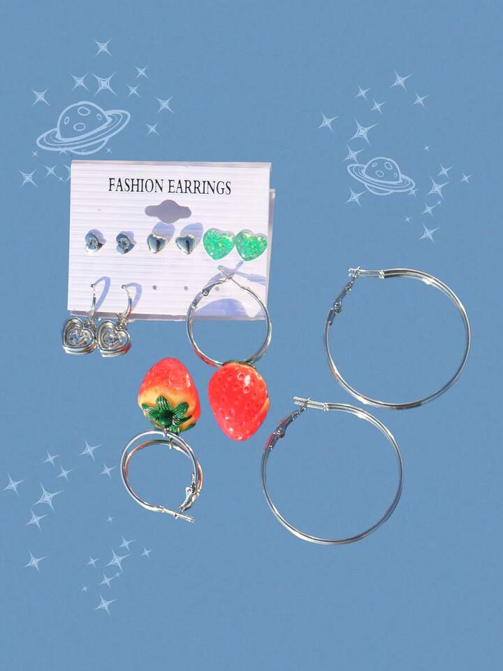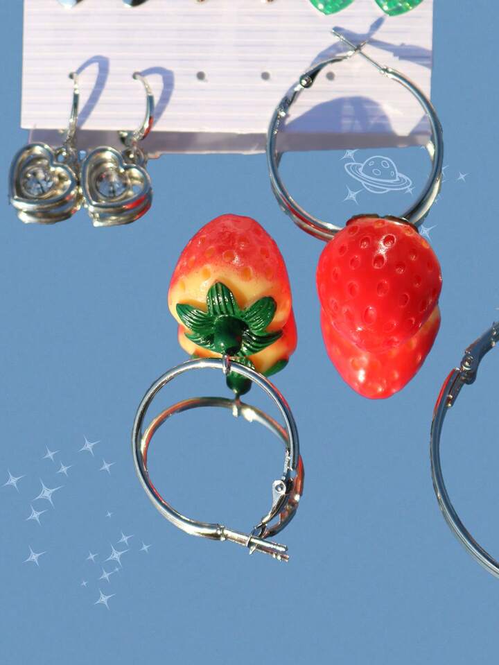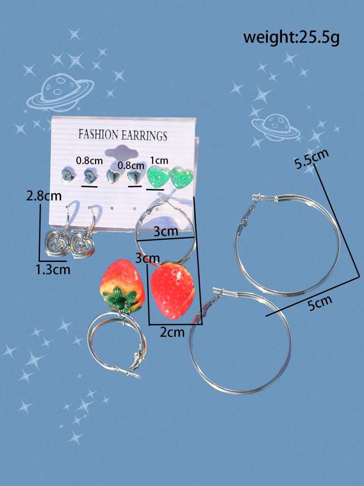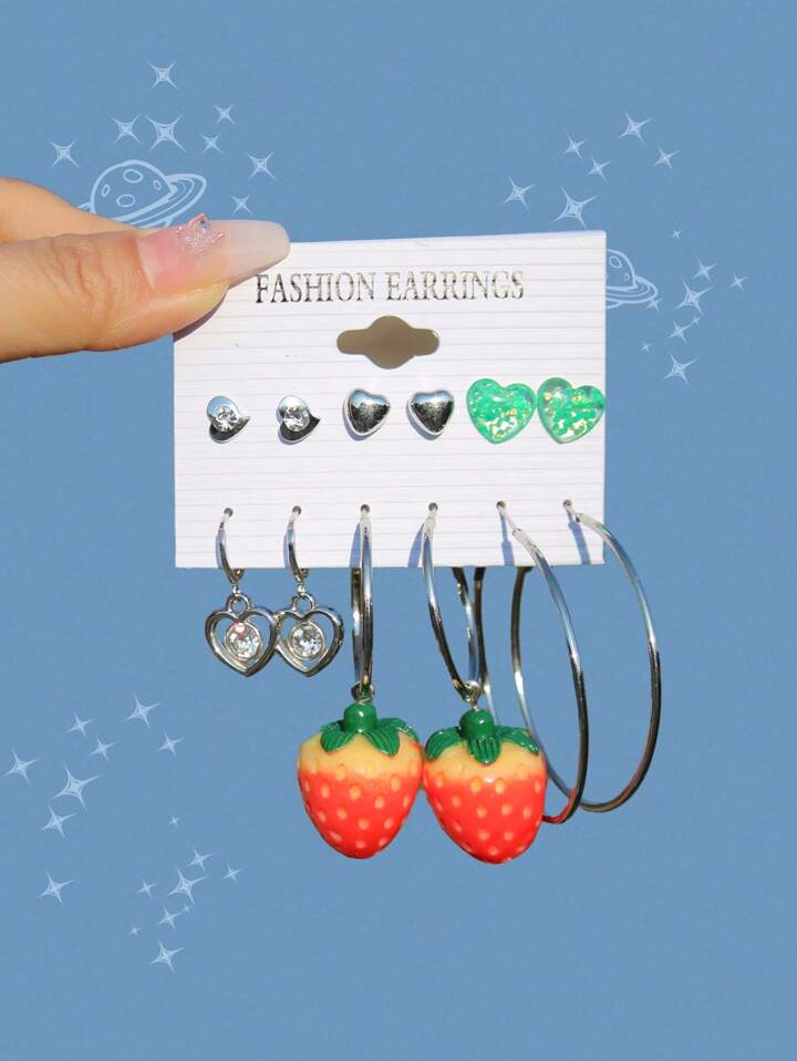 Kawaii 6pairs Heart & Strawberry Design Earrings