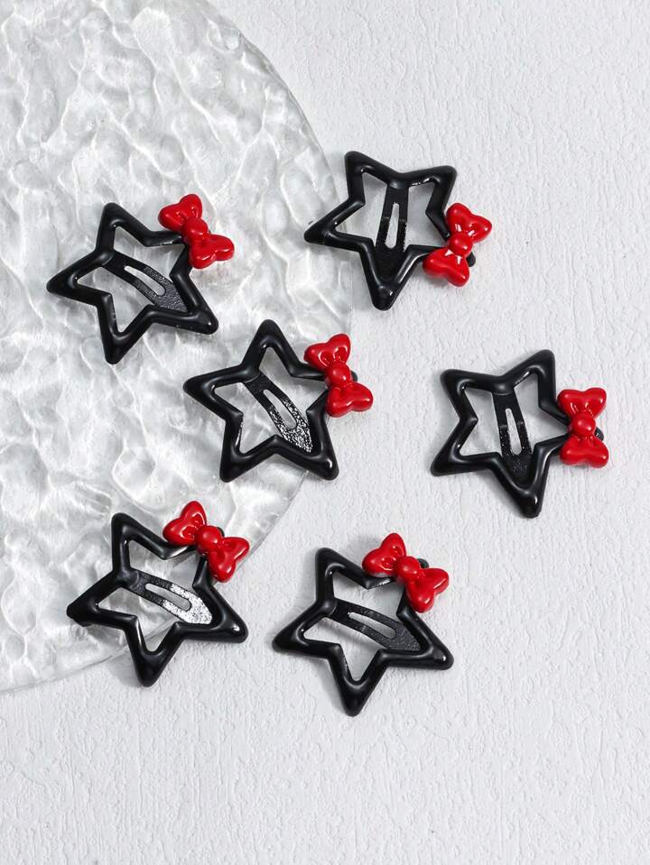 Kawaii 6pcs Cute Black Pentagram & Bow Hair Clips, Suitable For Back To School Gifts And Daily Wear Valentines Claw Clips Hair Claws Hair Barrettes