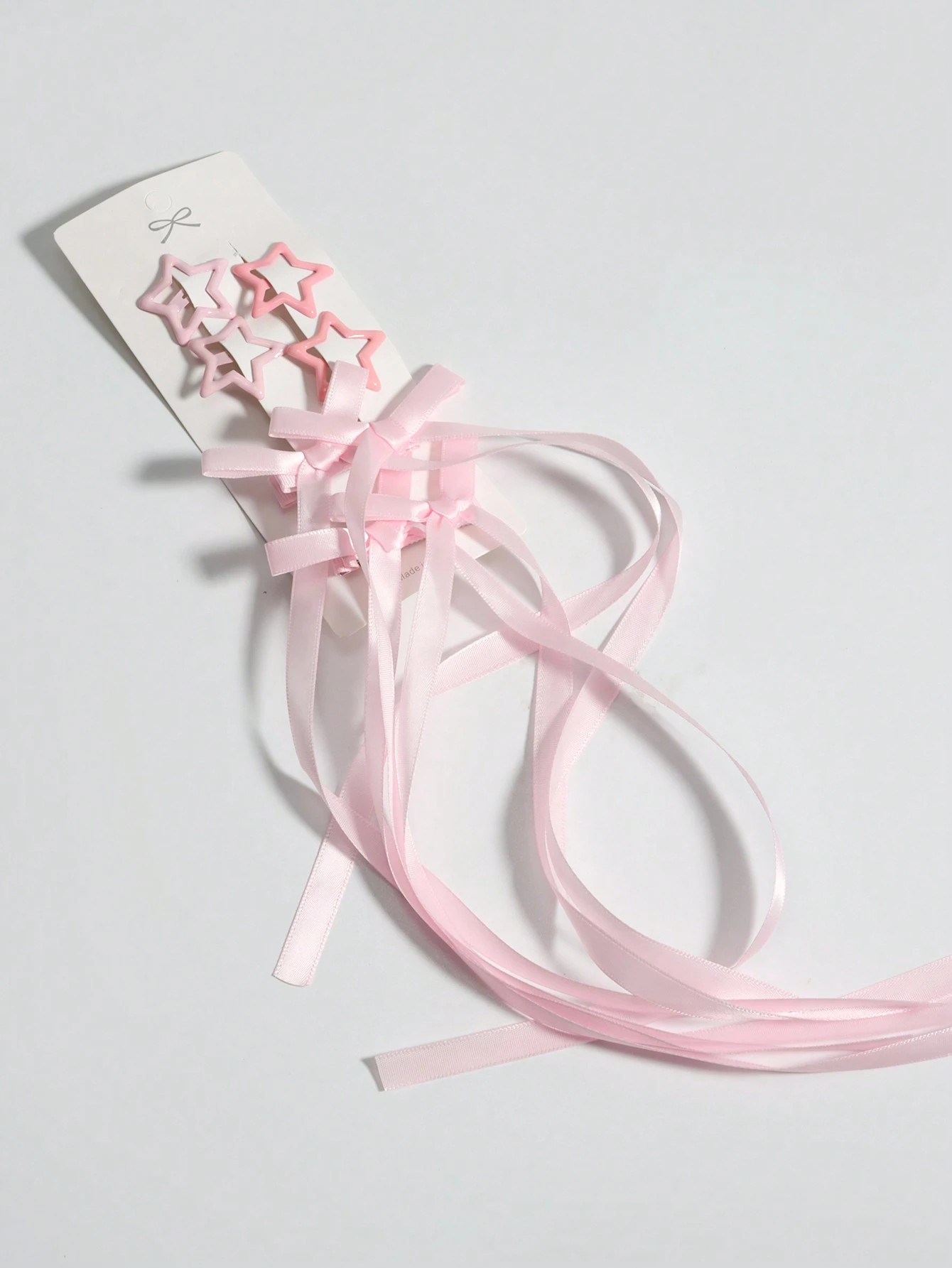 Kawaii 6pcs Cute Sweet Ballet Ribbon Bowknot Hair Clips Claw Clips Hair Slide Hair Barrettes