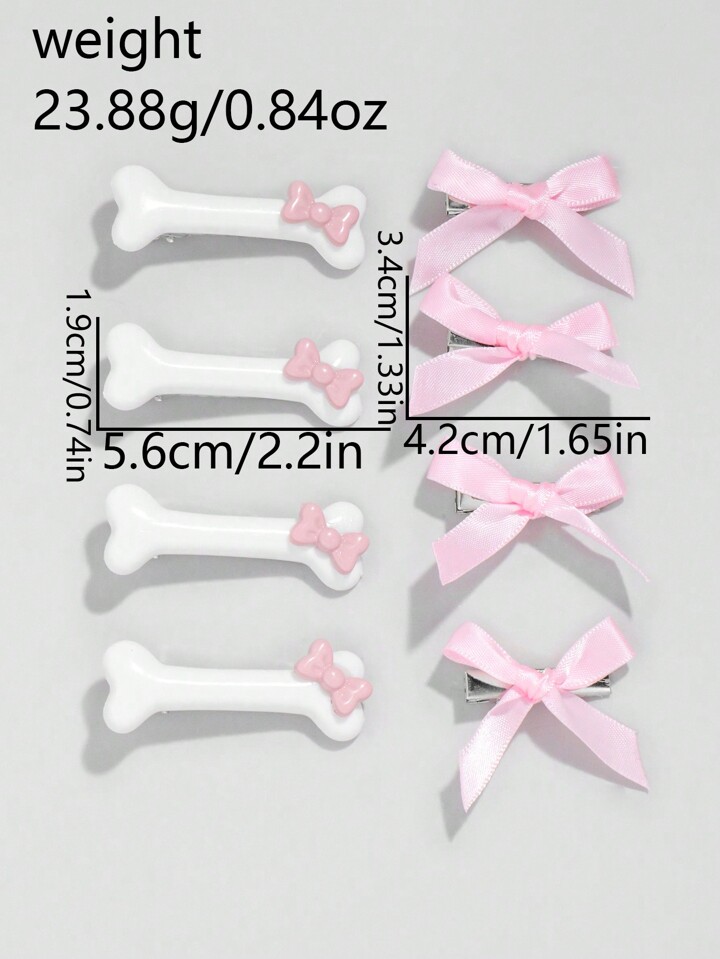 Kawaii 8pcs Japanese Style Sweet & Creative Bow Bone Hair Clip Bangs Clip Hair Accessories Set, Holiday Gift
