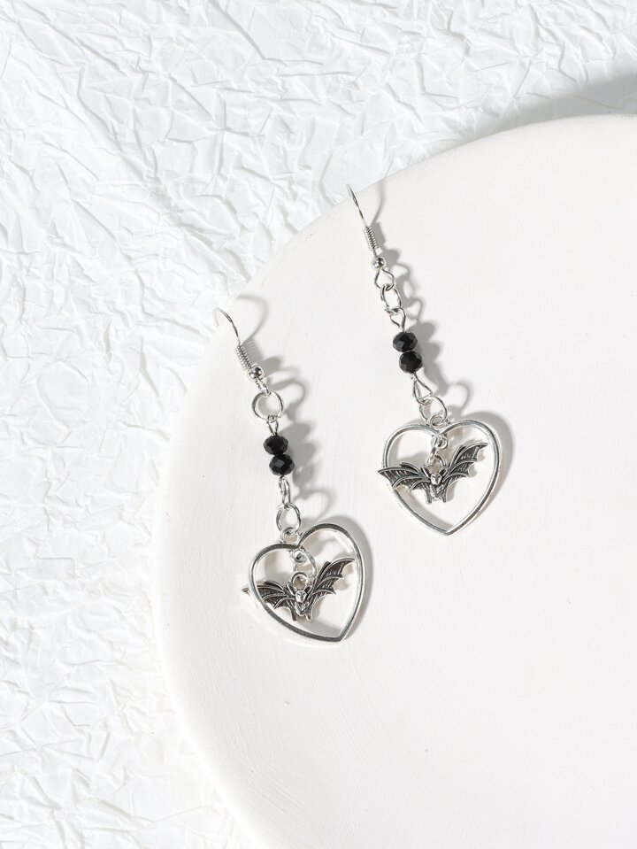 Kawaii Bat & Heart Drop Earrings