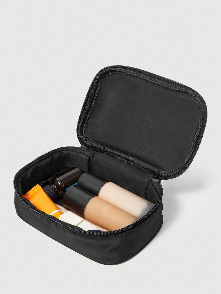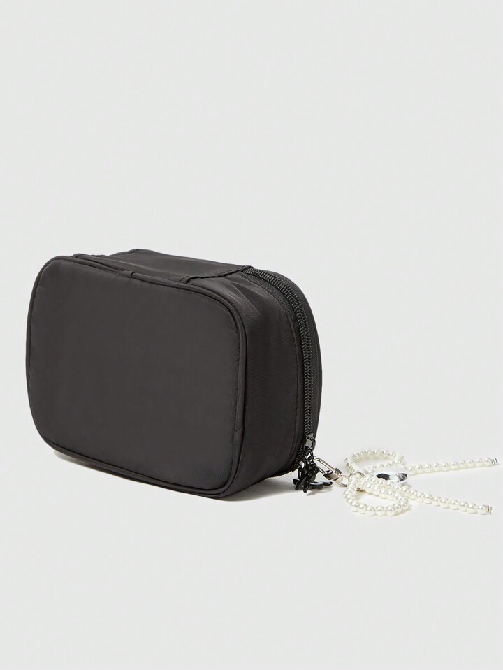 Kawaii Black Embroidered Bow Travel Cosmetic Bag + Pearl Butterfly Decor Accessory