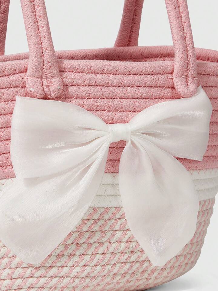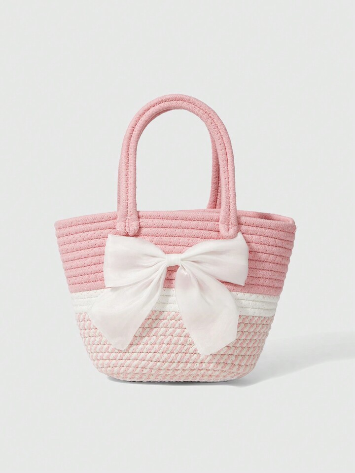 Kawaii Bow Decor Fashion Minimalist Handbag, Daily Casual Storage Bag Valentines