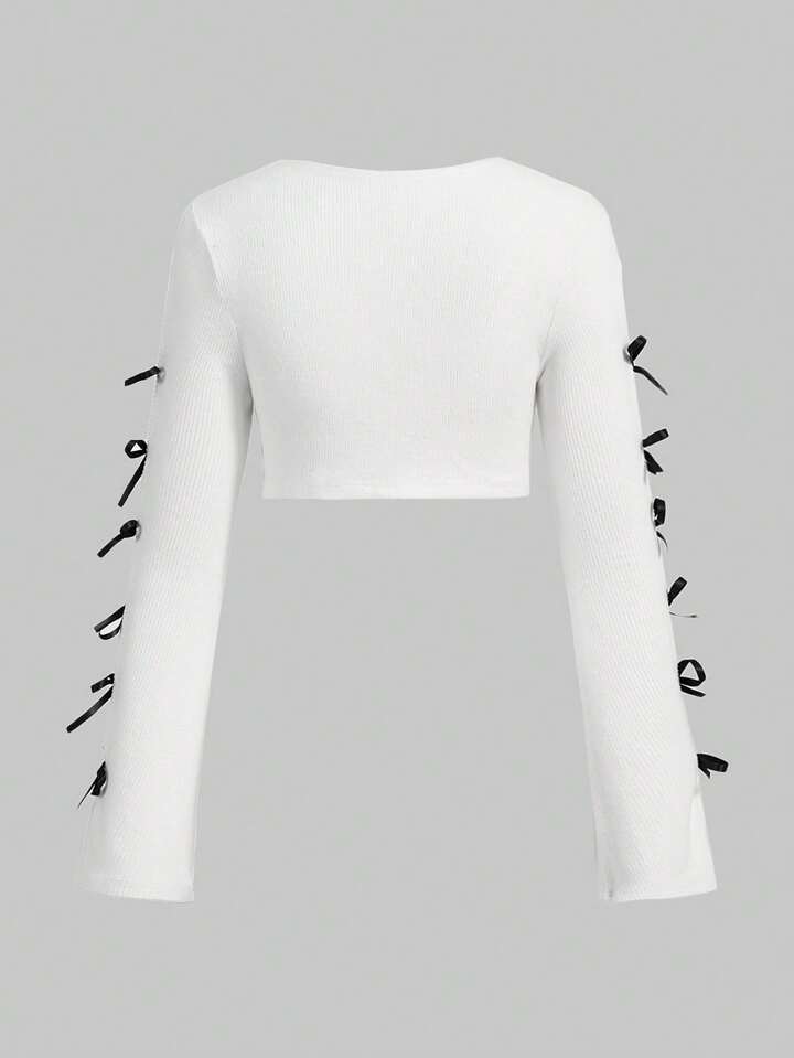 Kawaii Bow Front Cut Out Crop Top