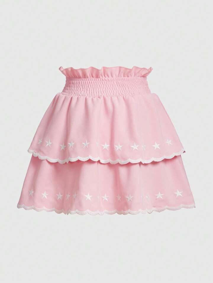 Kawaii Bow Print Paperbag Waist Lettuce Trim Two Layer Hem Skirt