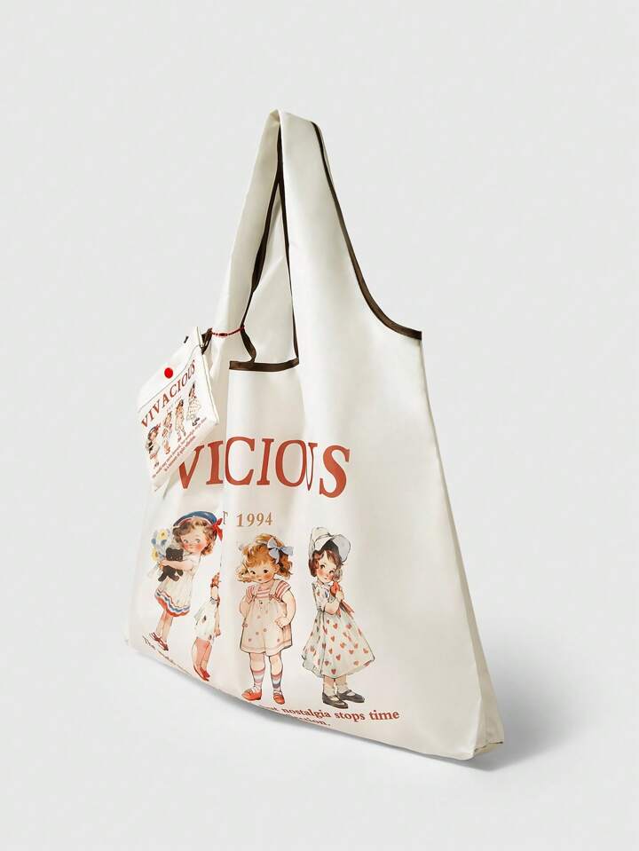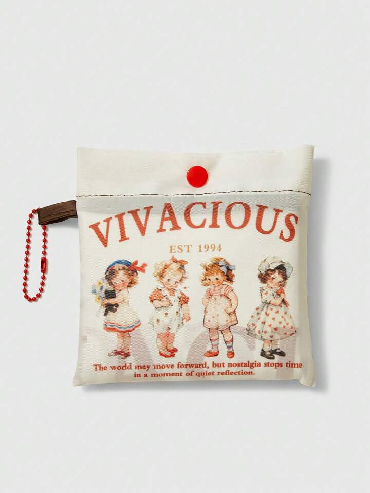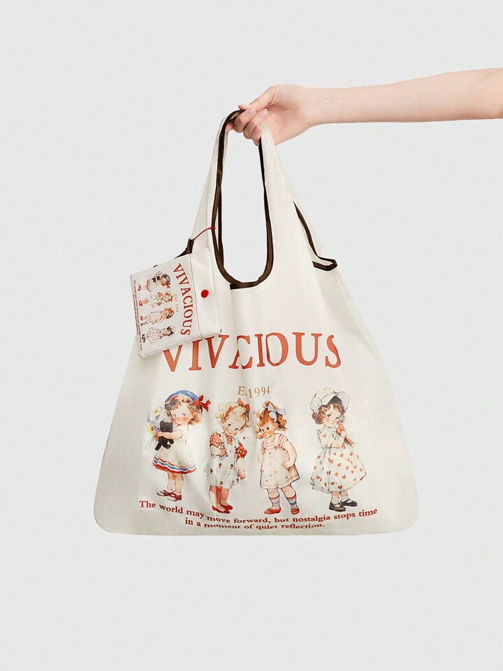 Kawaii Cartoon American Girl Printed Large Capacity Foldable Shopping Bag With Tote Bag And Coin Purse 442464
