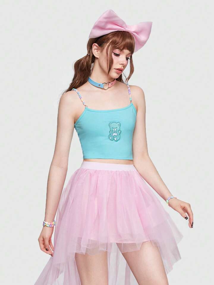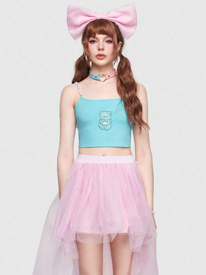Kawaii Cartoon Bear Embroidery Crop Cami
