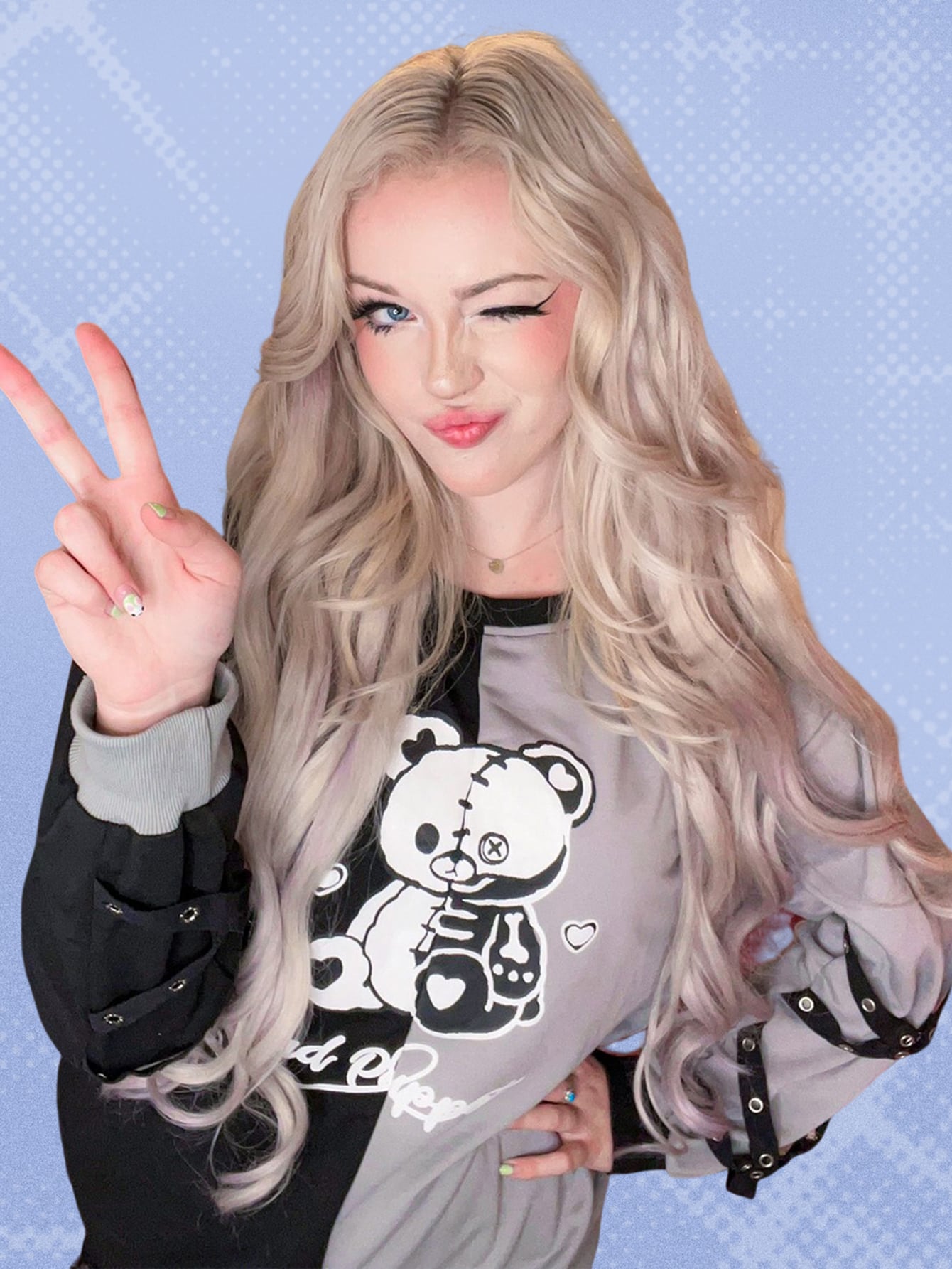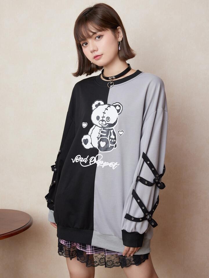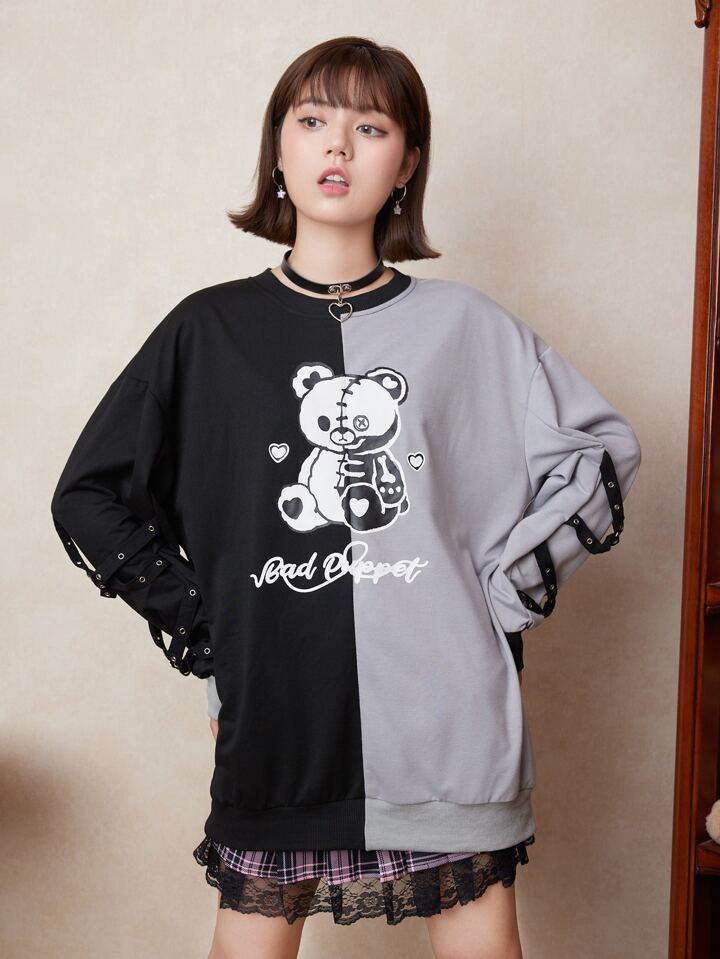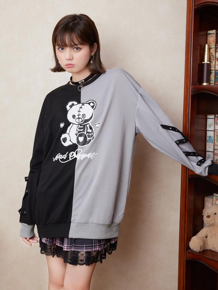 Kawaii Cartoon Bear Graphic Colorblock Sweatshirt
