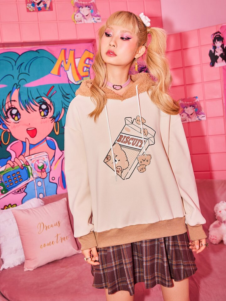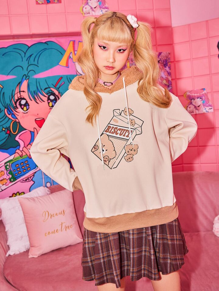 Kawaii Cartoon Bear Graphic Drawstring Hoodie