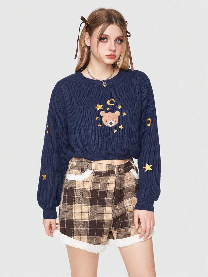Kawaii Cartoon Bear Printed Lantern Sleeve Sweater