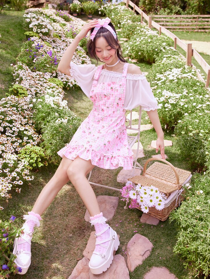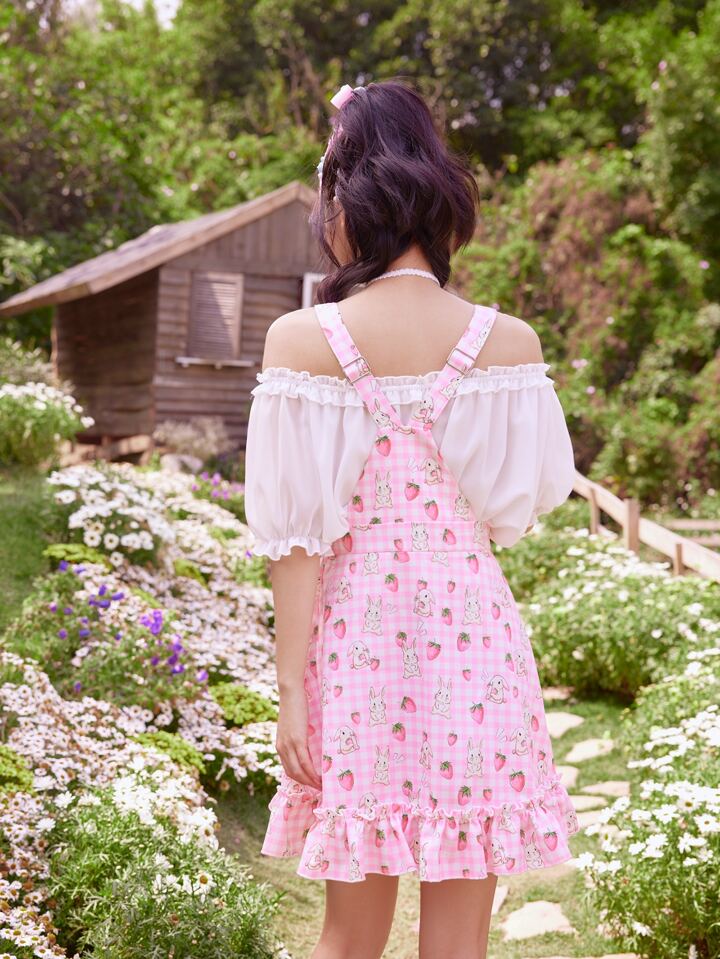 Kawaii Cartoon Graphic Ruffle Hem Overall Dress