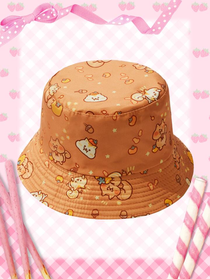 Kawaii Cartoon Squirrel Print Bucket Hat