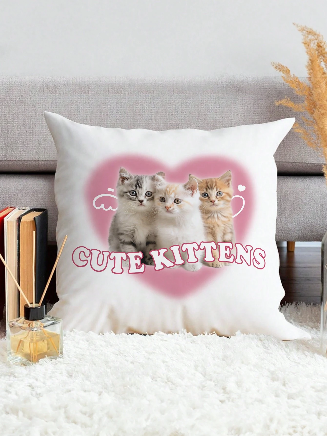 Kawaii Cat & Letter Graphic Decorative Cushion