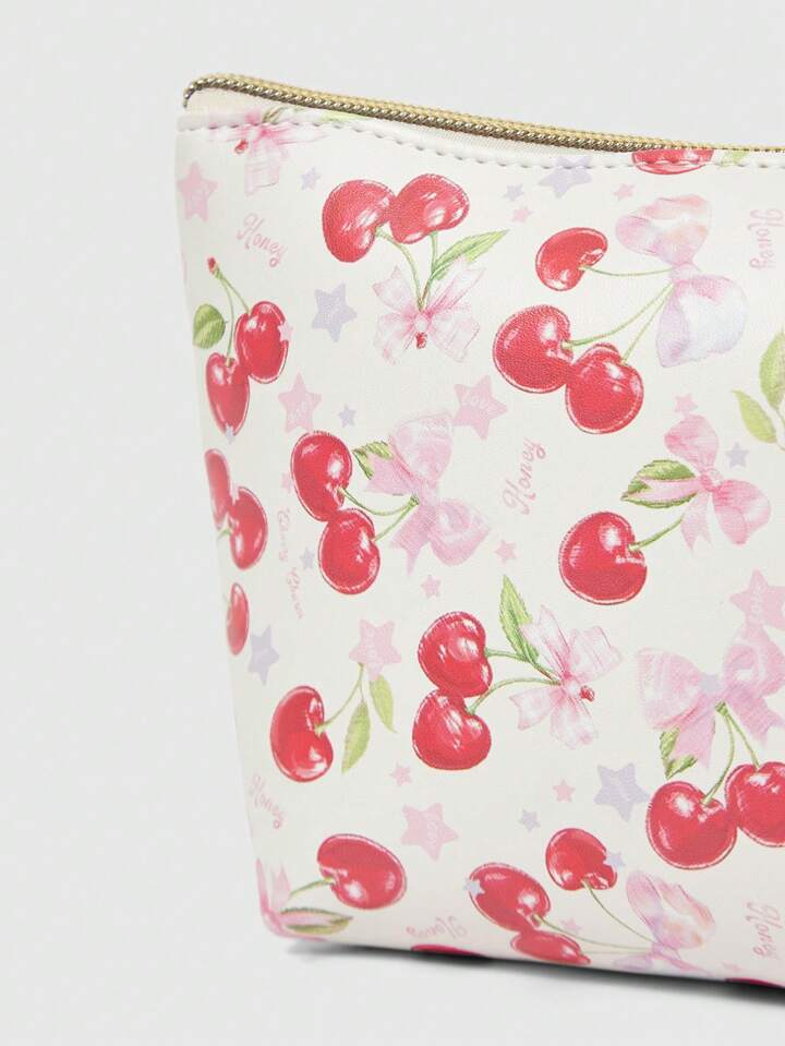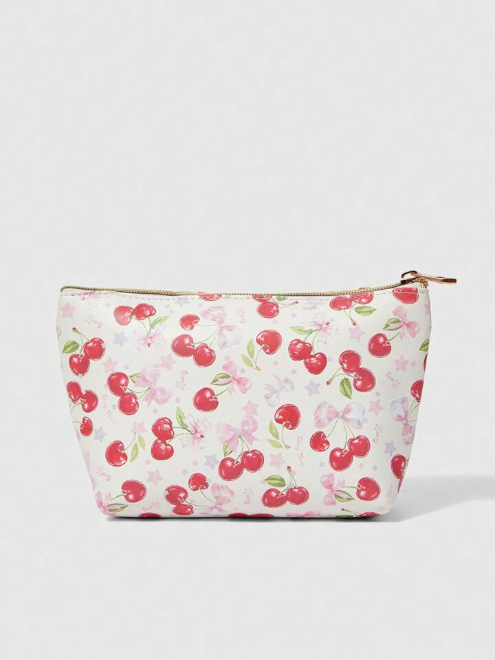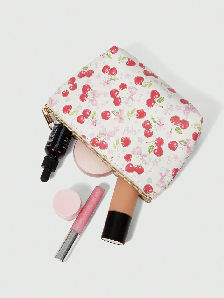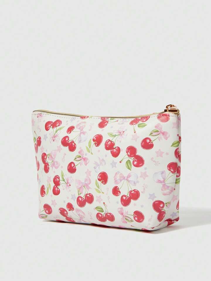 Kawaii Cherry Printed T-Shaped Portable Cosmetic Bag For Storage
