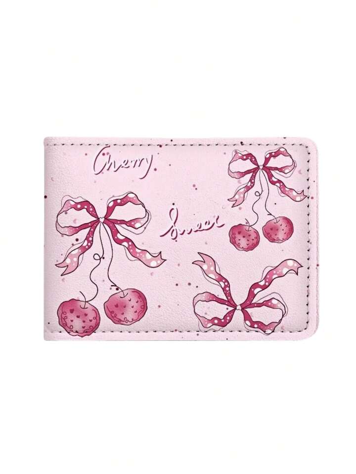 Kawaii Compact & Versatile Multi-Functional Card Holder With Pink Cherry Blossom & Bow Print, Suitable For ID, Driver's License, Bank Card, Etc., Fashionable & Cute Design