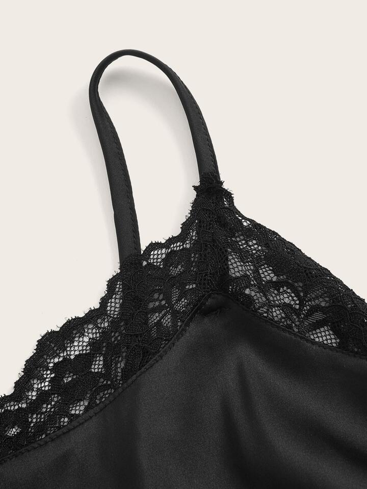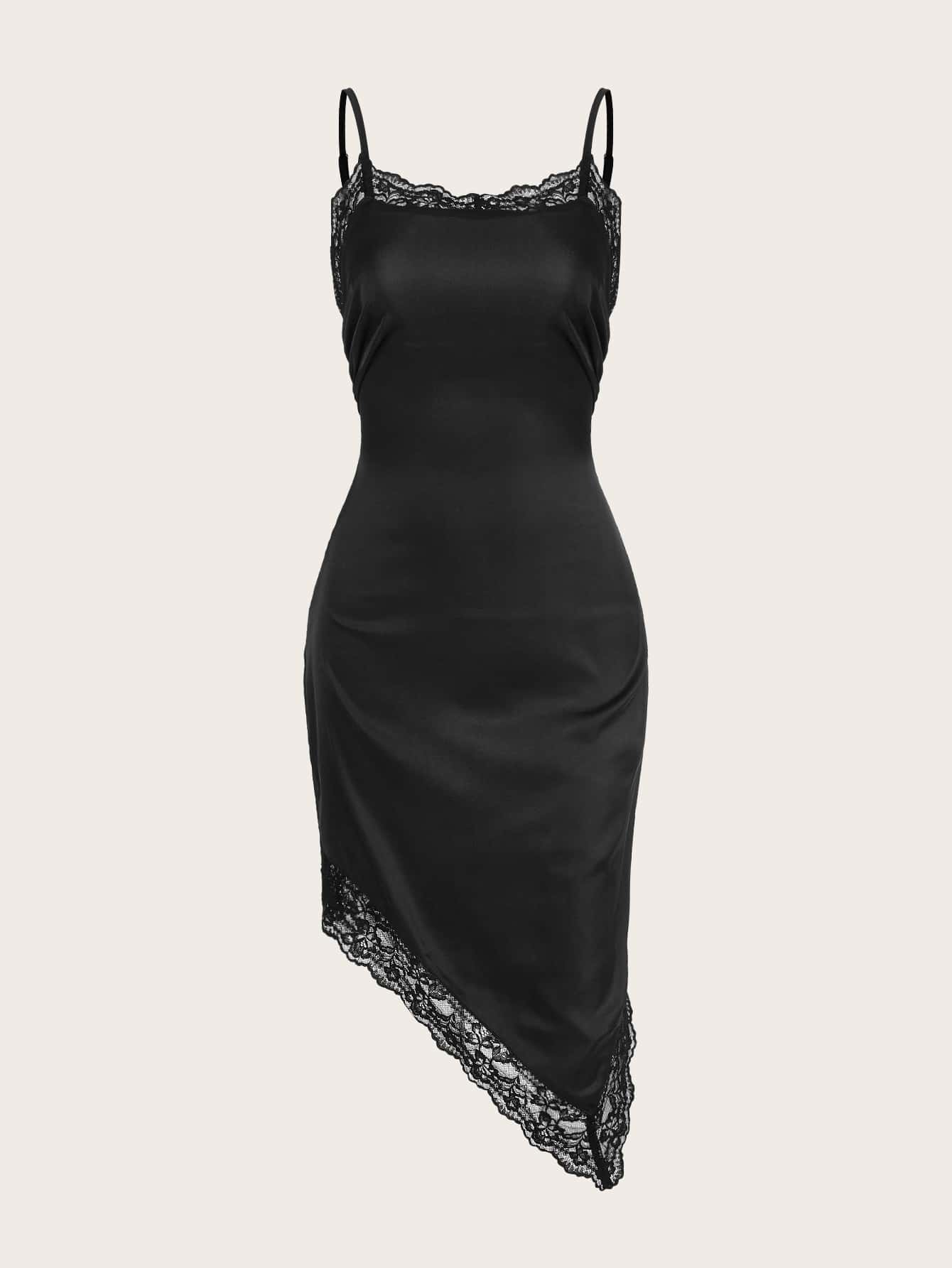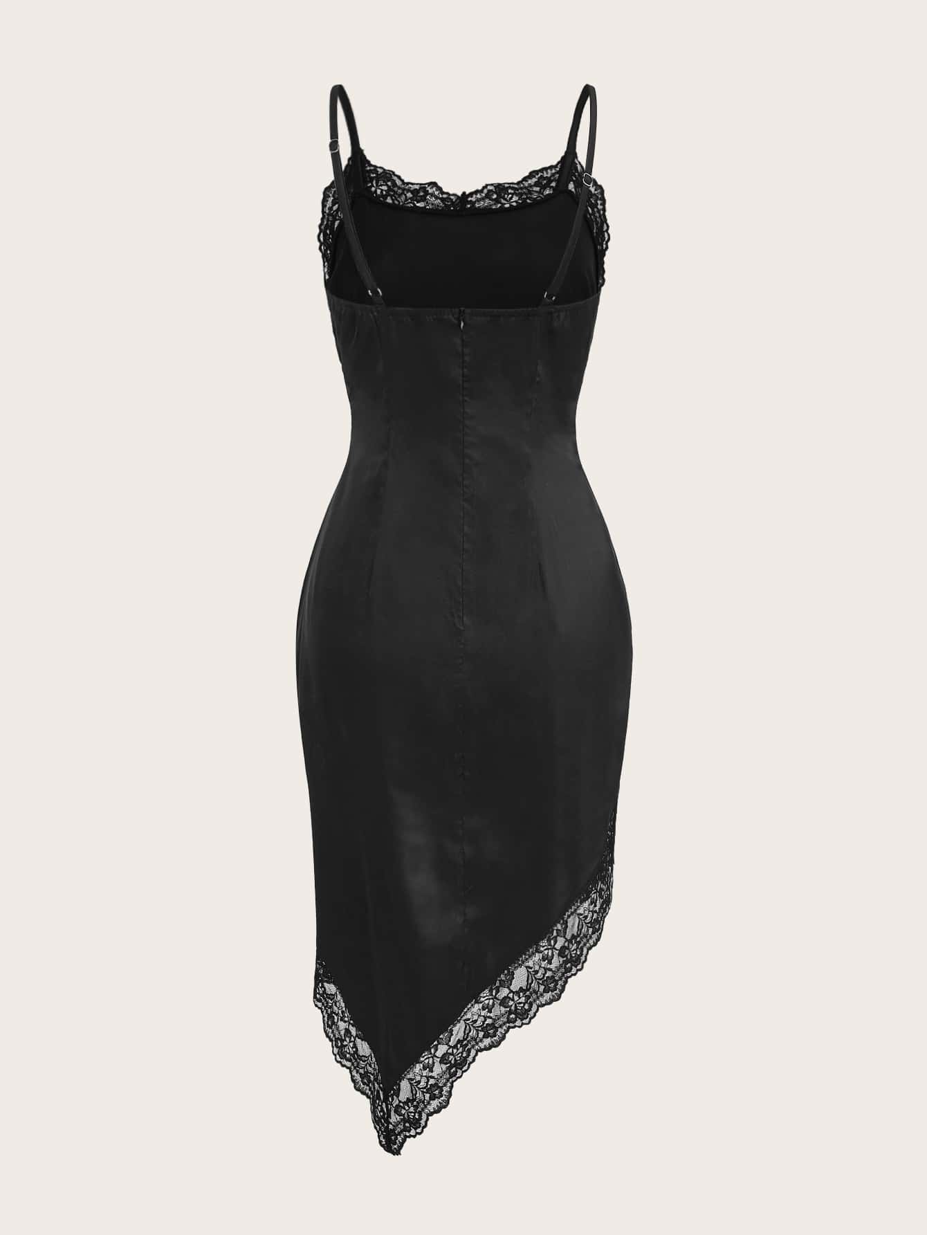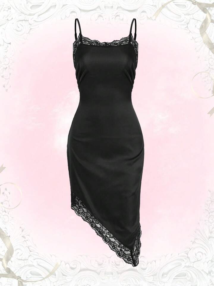 Kawaii Contrast Lace Asymmetrical Hem Cami Dress