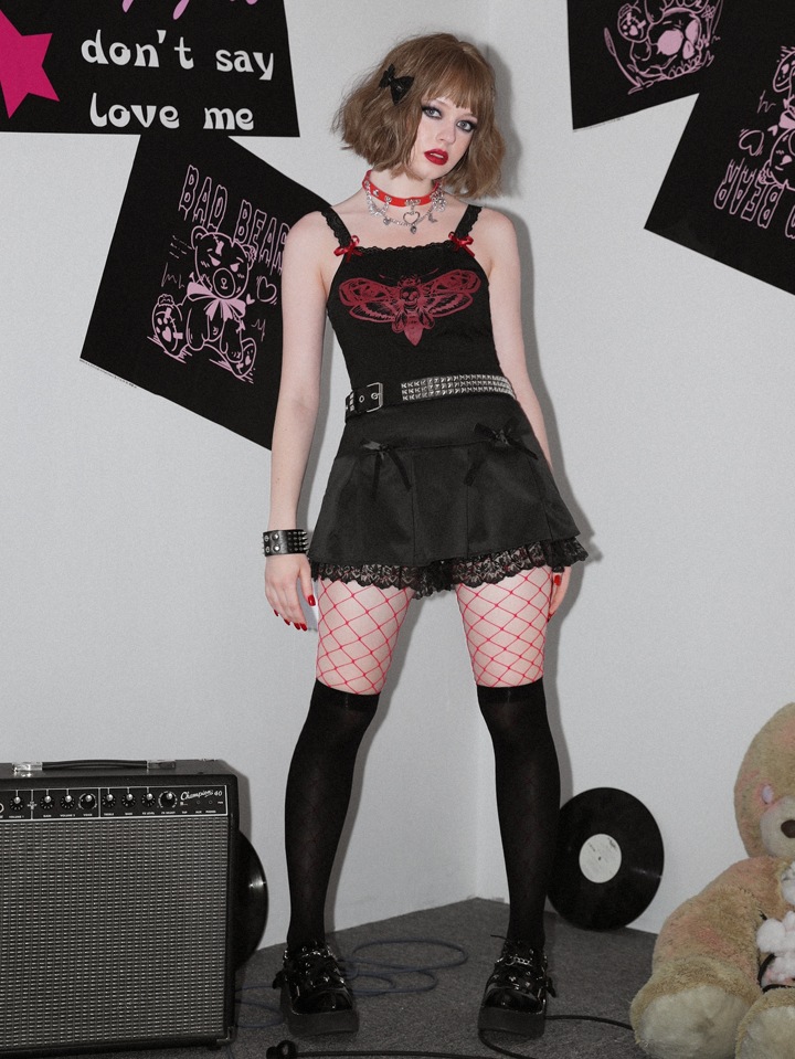 Kawaii Contrast Lace Bow Front Plicated Skirt