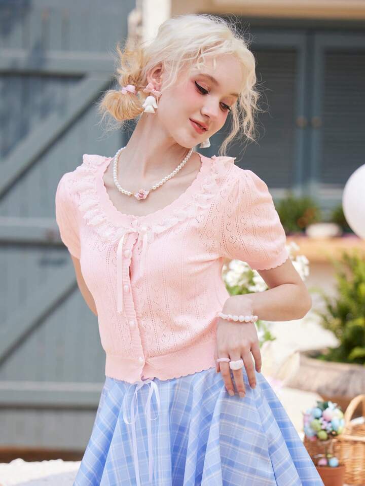 Kawaii Contrast Lace Button Front Cardigan