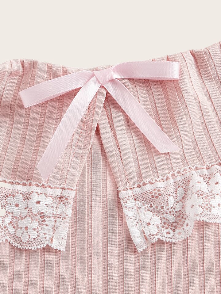 Kawaii Contrast Lace Cold Shoulder Tee, School
