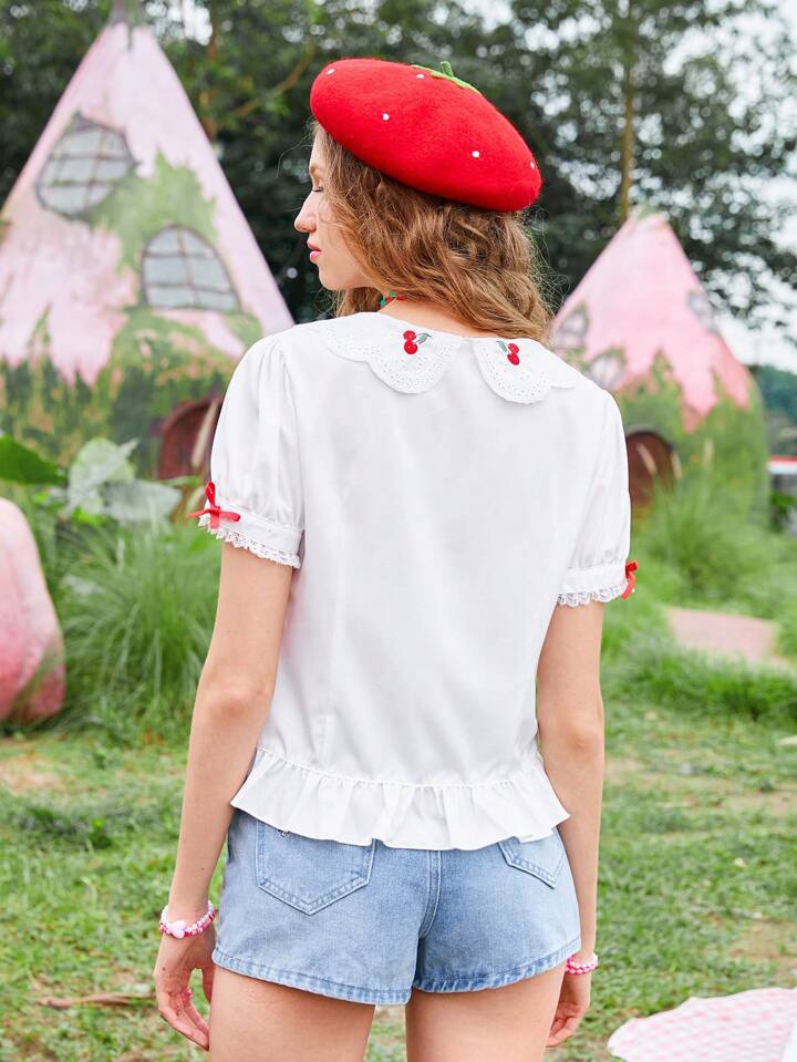 Kawaii Contrast Lace Ruffle Hem Shirt