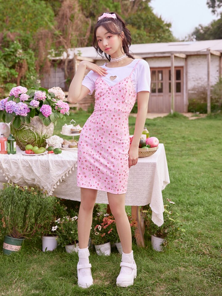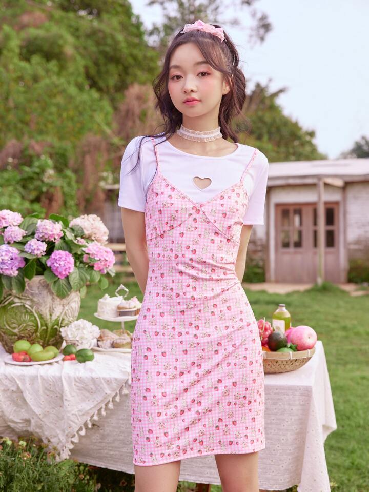 Kawaii Cut Out Tee & Cartoon Graphic Cami Dress