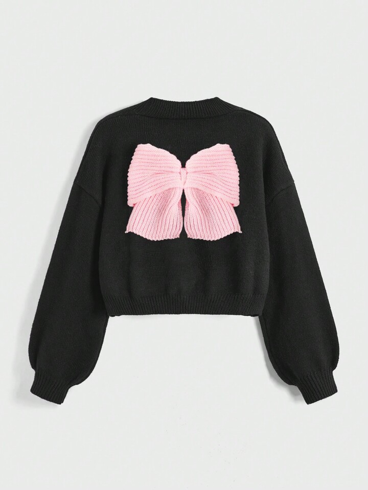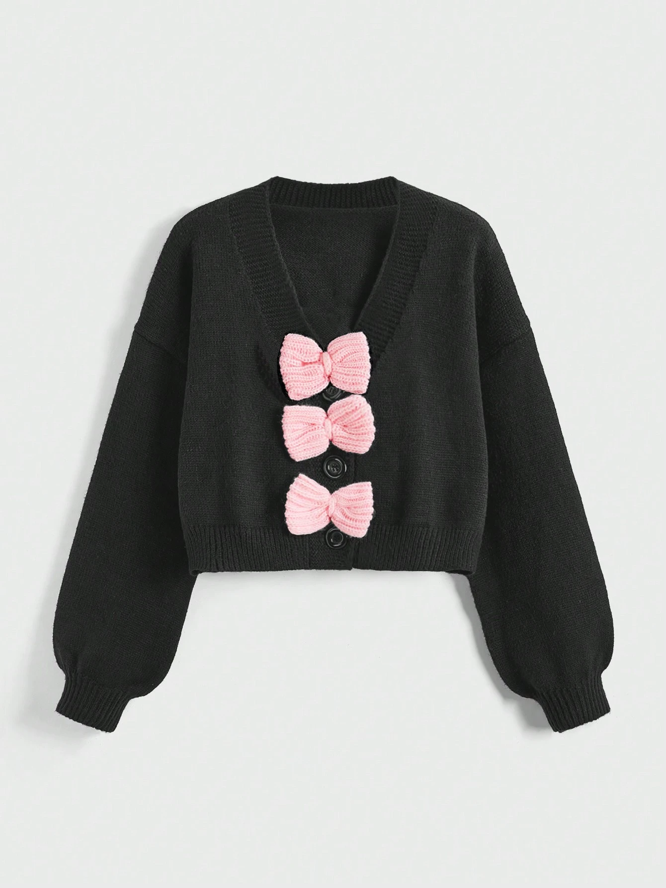 Kawaii Cute 3D Bowknot Decor Women Cardigan