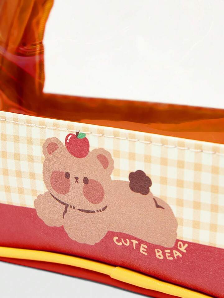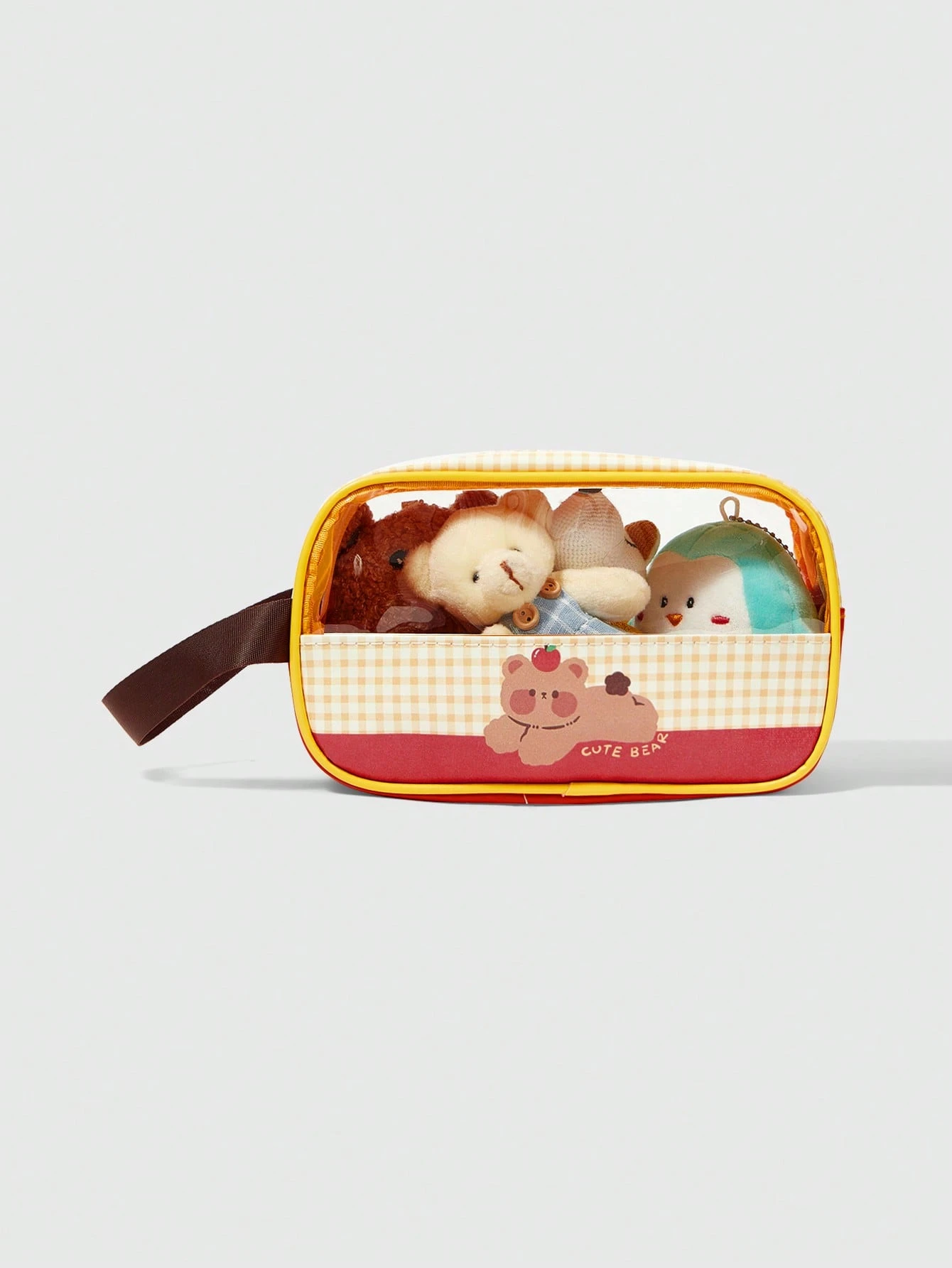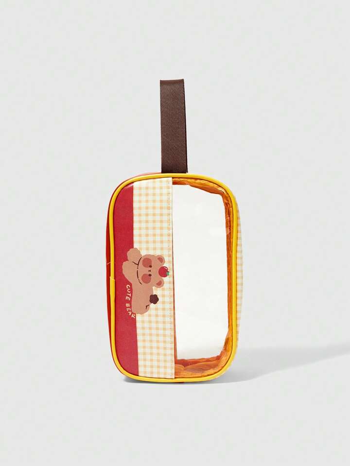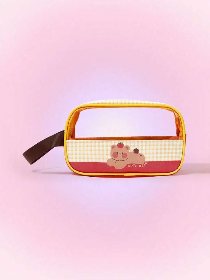 Kawaii Cute Bear Plaid Sheer Pouch Accessory Organizer Bag