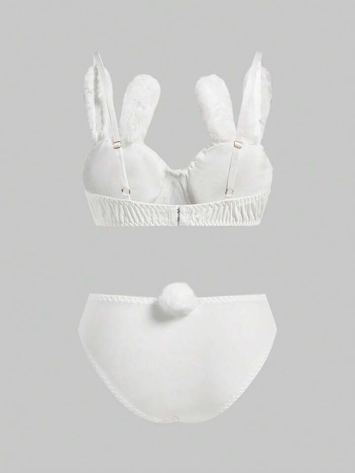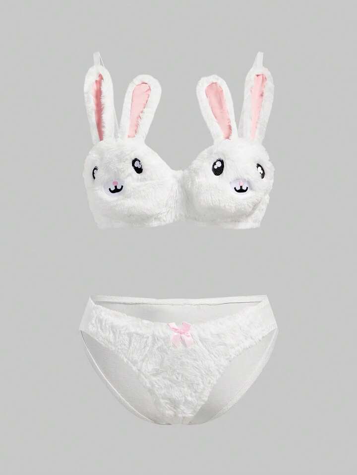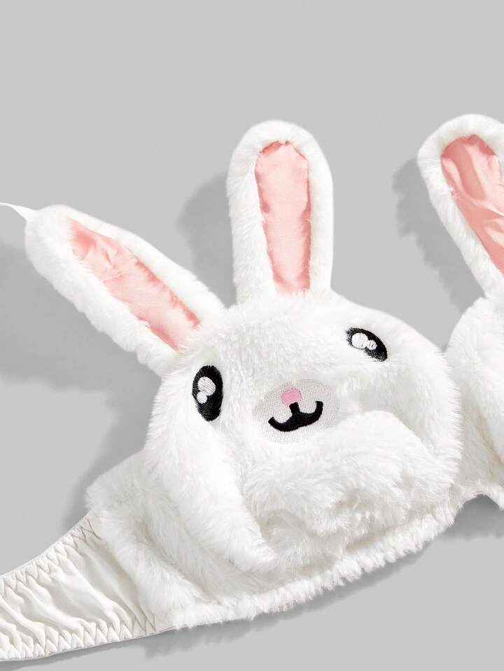 Kawaii Cute Bunny Embroidery Plush Lace Bow Wireless Bra Set