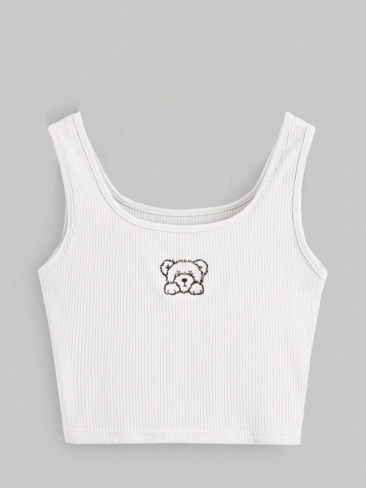 Kawaii Cute Cartoon Bear Embroidered Crop Top
