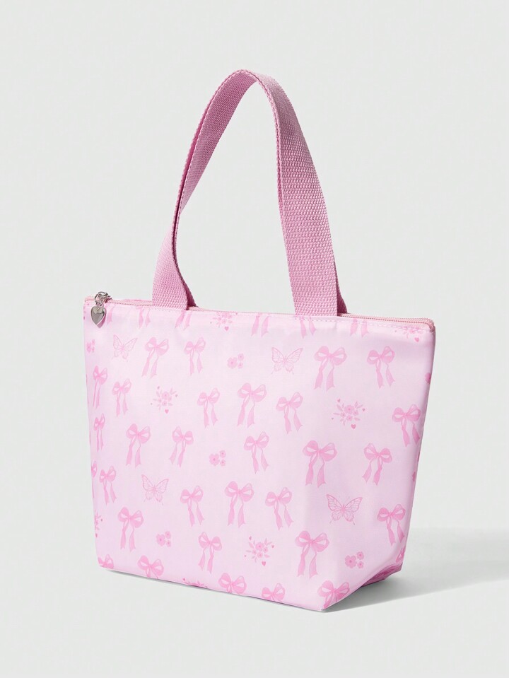 Kawaii Cute Pink Bow-Knot Fashionable Tote Lunch Bag With Thermal Insulation & Large Capacity Valentines