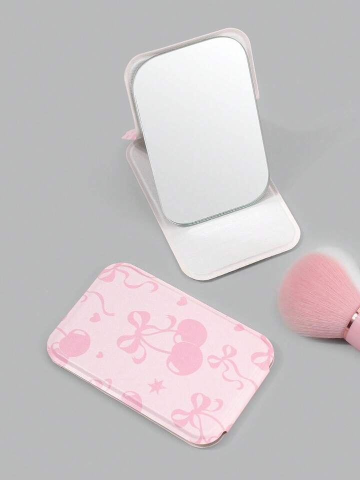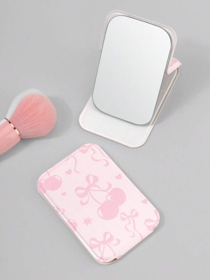 Kawaii Cute & Simple Style Cherry, Strawberry, Bow Fruit Foldable Portable Vanity Makeup Mirror, Suitable For Travel & Gift