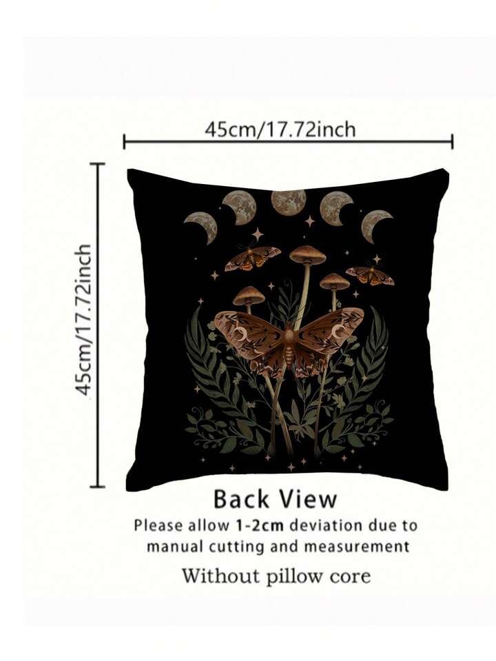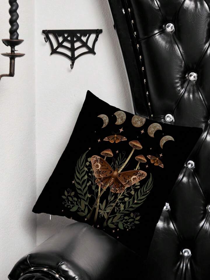 Kawaii Dark Style Butterfly & Mushroom Patterned Removable Pillow Cover, 53x85cm