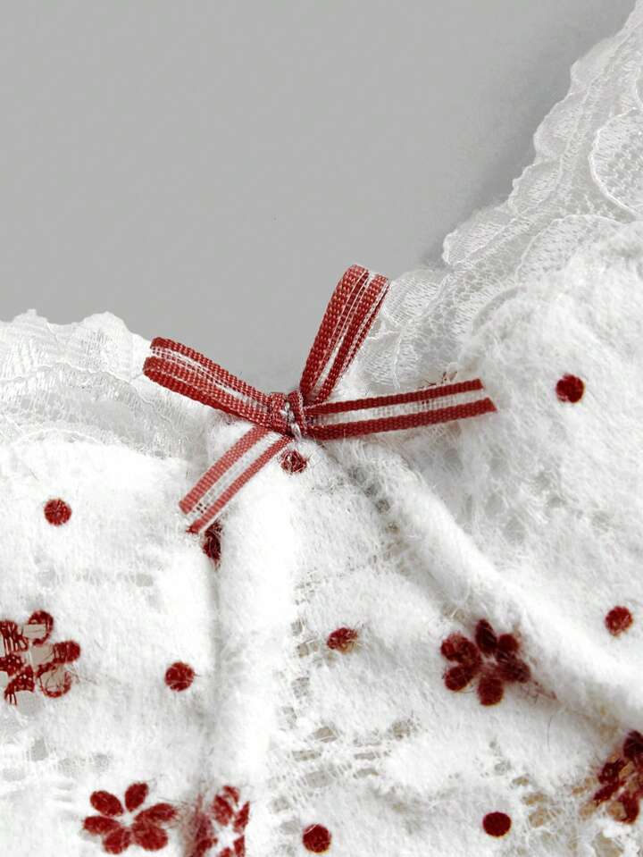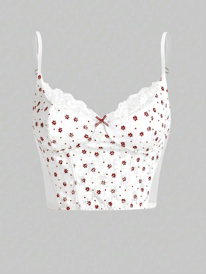 Kawaii Ditsy Floral Print Contrast Lace Bra