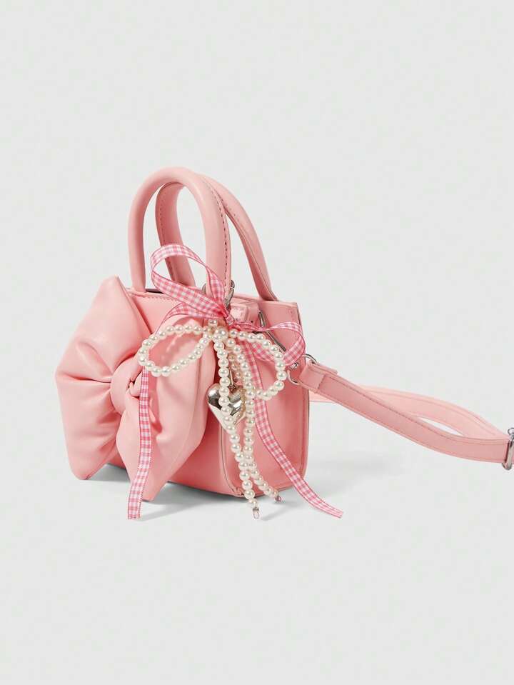 Kawaii Fashion Solid Color Bow Decor Top Handle Mini Bag For Women
