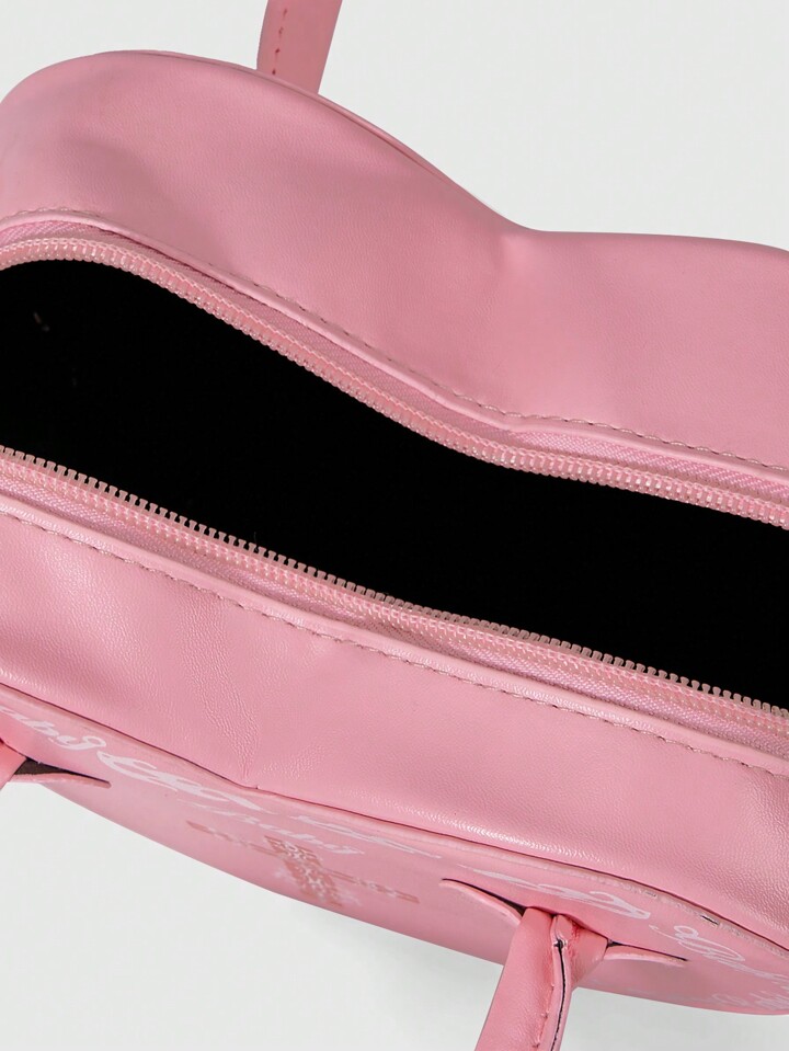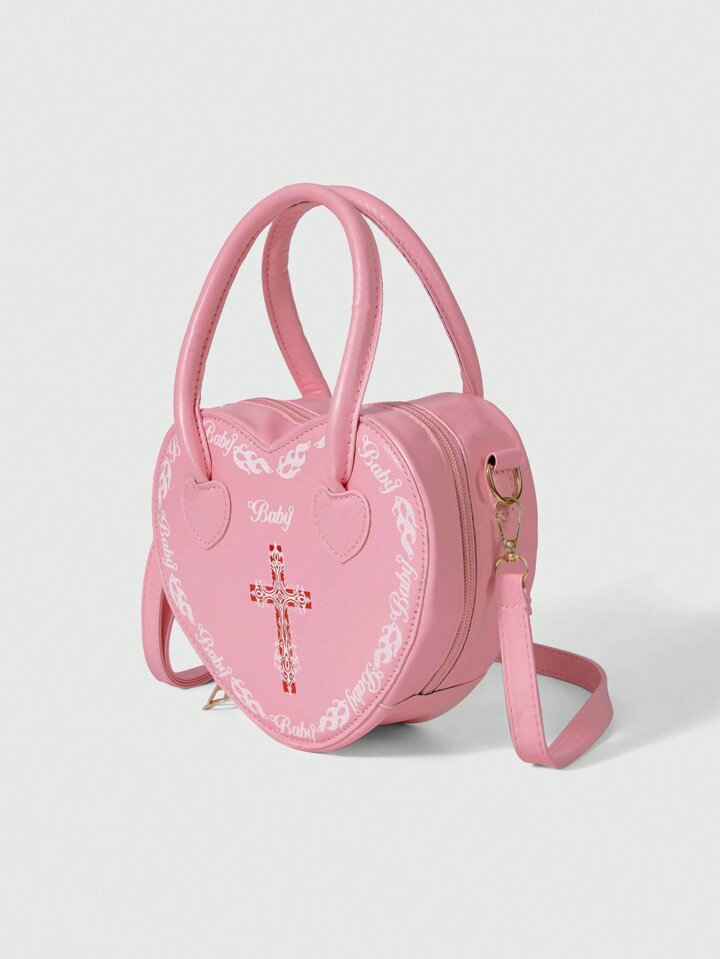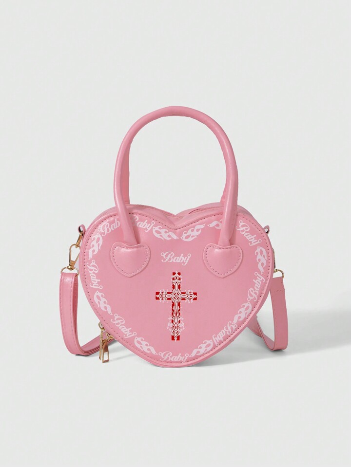Kawaii Fashionable Contrast Color Cross Floral Print Handbag With Heart Design For Women Valentines