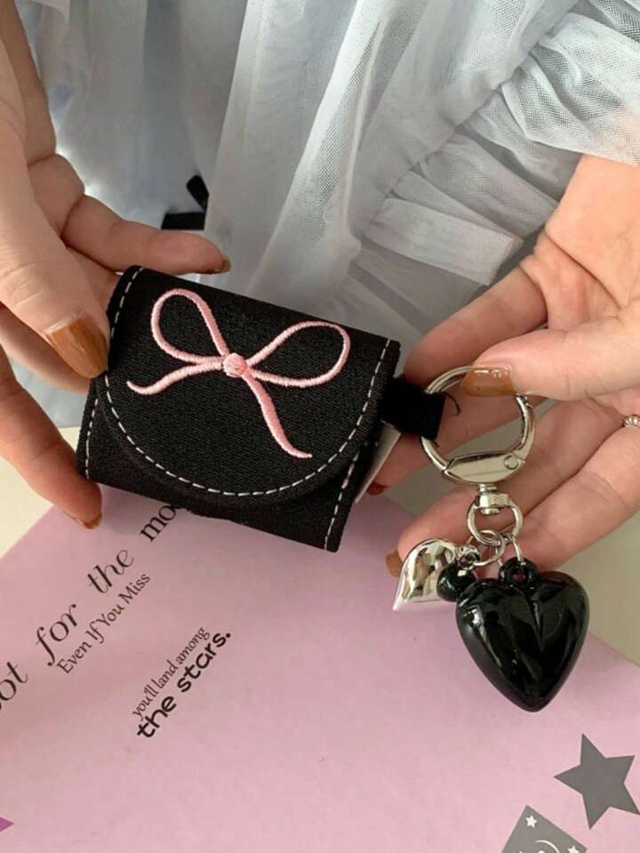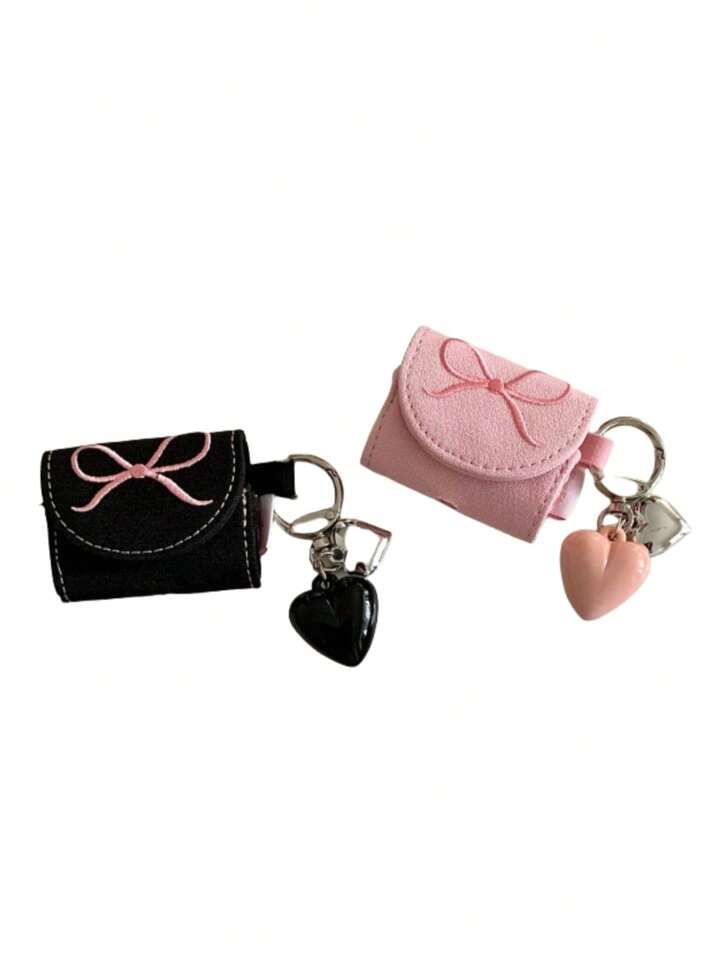 Kawaii Fashionable Romantic Heart Shaped Bag Charm; Cute Girly Embroidered Bow Bluetooth Earphone Pro/3 Protective Case