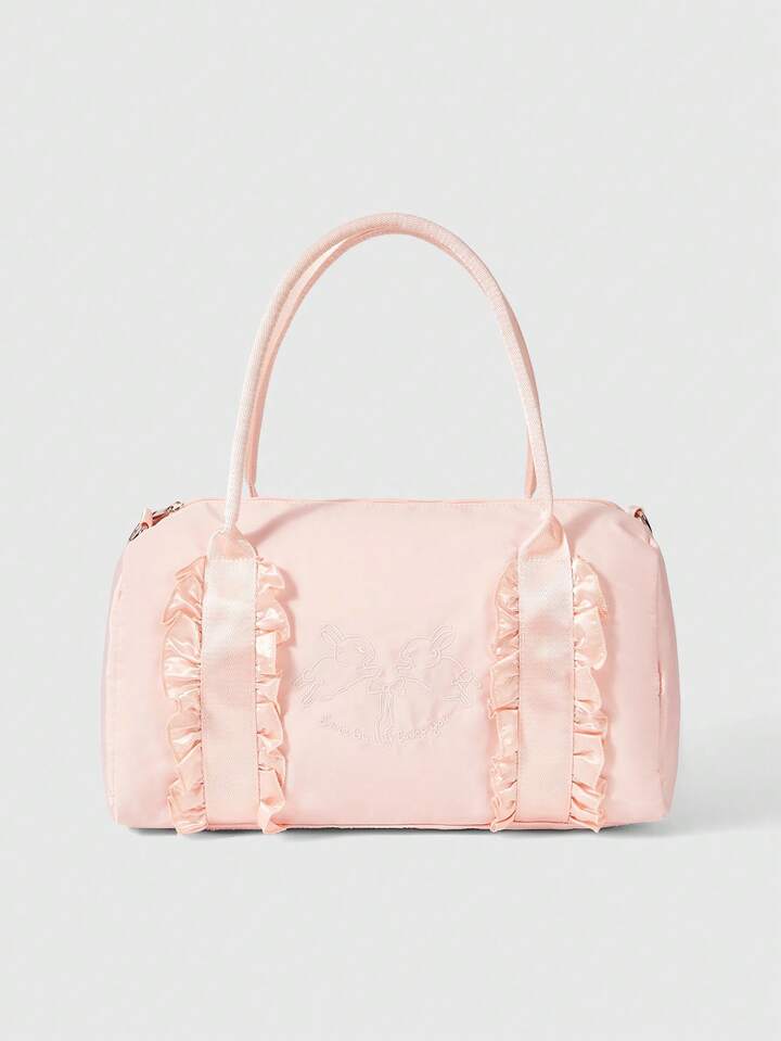 Kawaii Floral Pattern: 336027 Rabbit Bow Short Trip Bag Women's Business Travel Tote Handbag Messenger Bag 2-In-1 Large Capacity Lightweight Gym Sports Duffel Bag