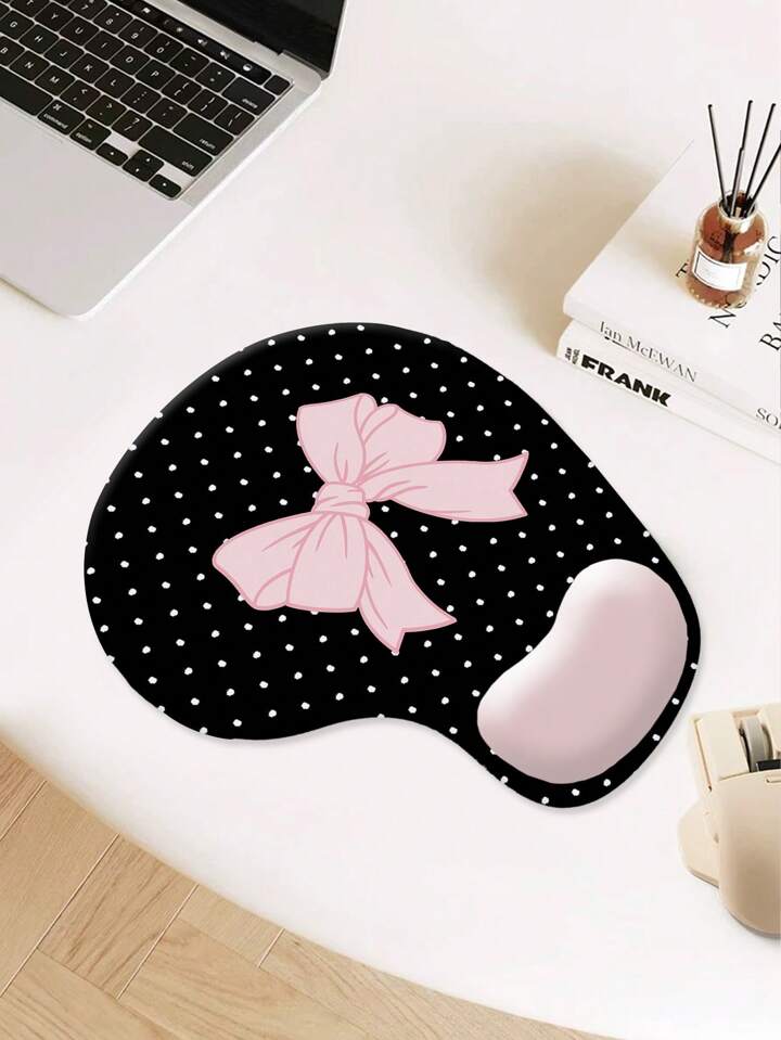 Kawaii Girl's Pink Bow & Polka Dot Pattern Non-Slip Waterproof Thick Mouse Pad With Wrist Support, #1020874