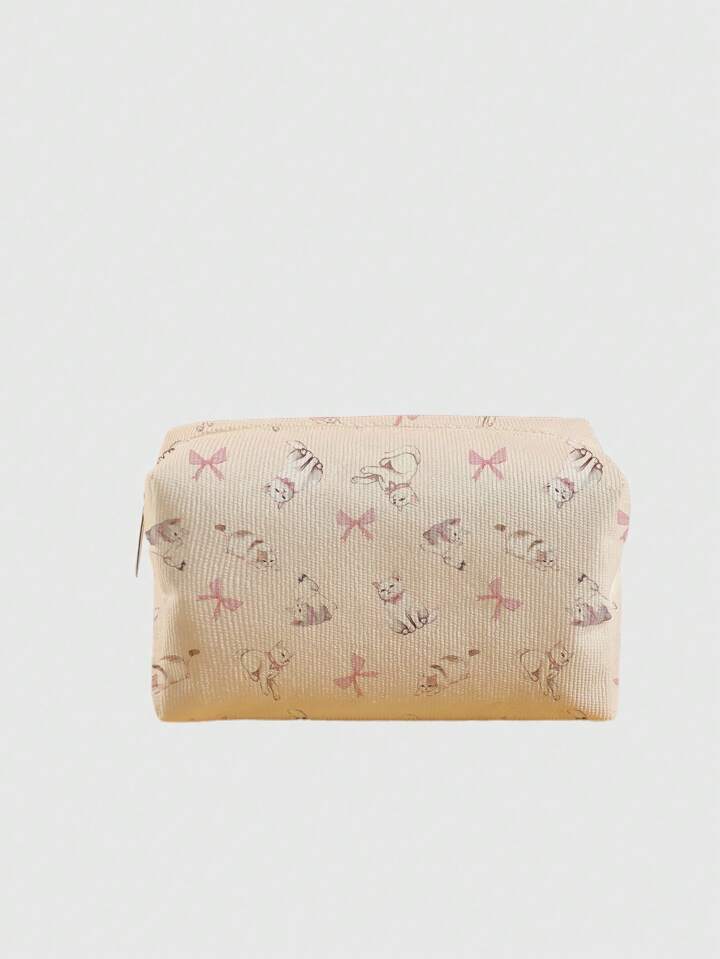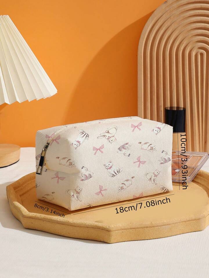 Kawaii Hand Drawn Lovely Cat Pattern Octagonal Velvet Cosmetic Bag