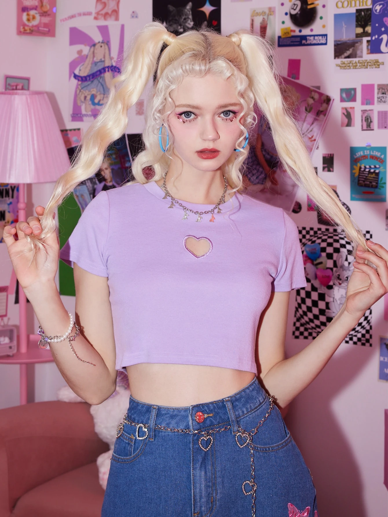Kawaii Heart Cut Out Crop Tee