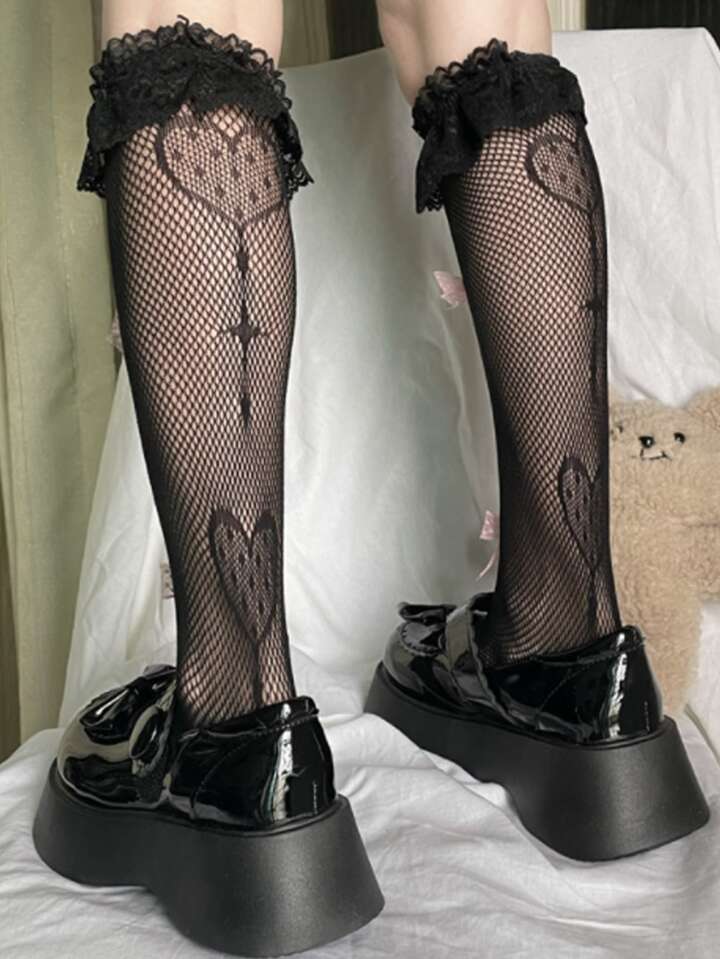 Kawaii Heart Graphic Over The Calf Socks